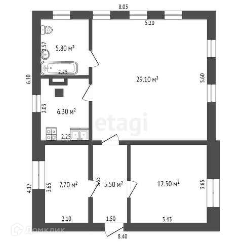 Общая площадь 66.4 м2