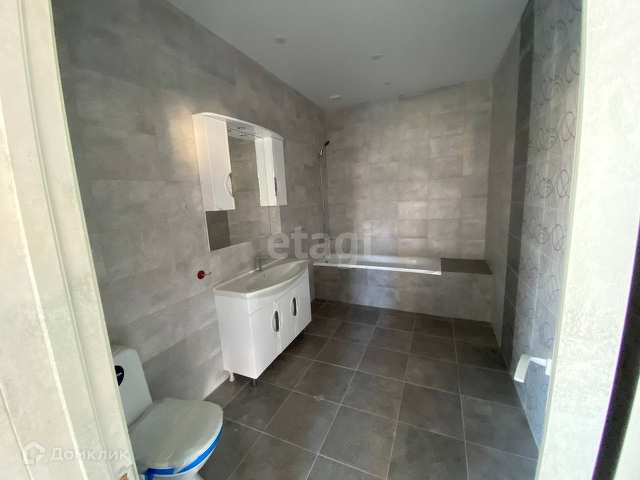 -в ванной: установлена ванная, раковина с тумбой, унитаз и зеркало-шкаф