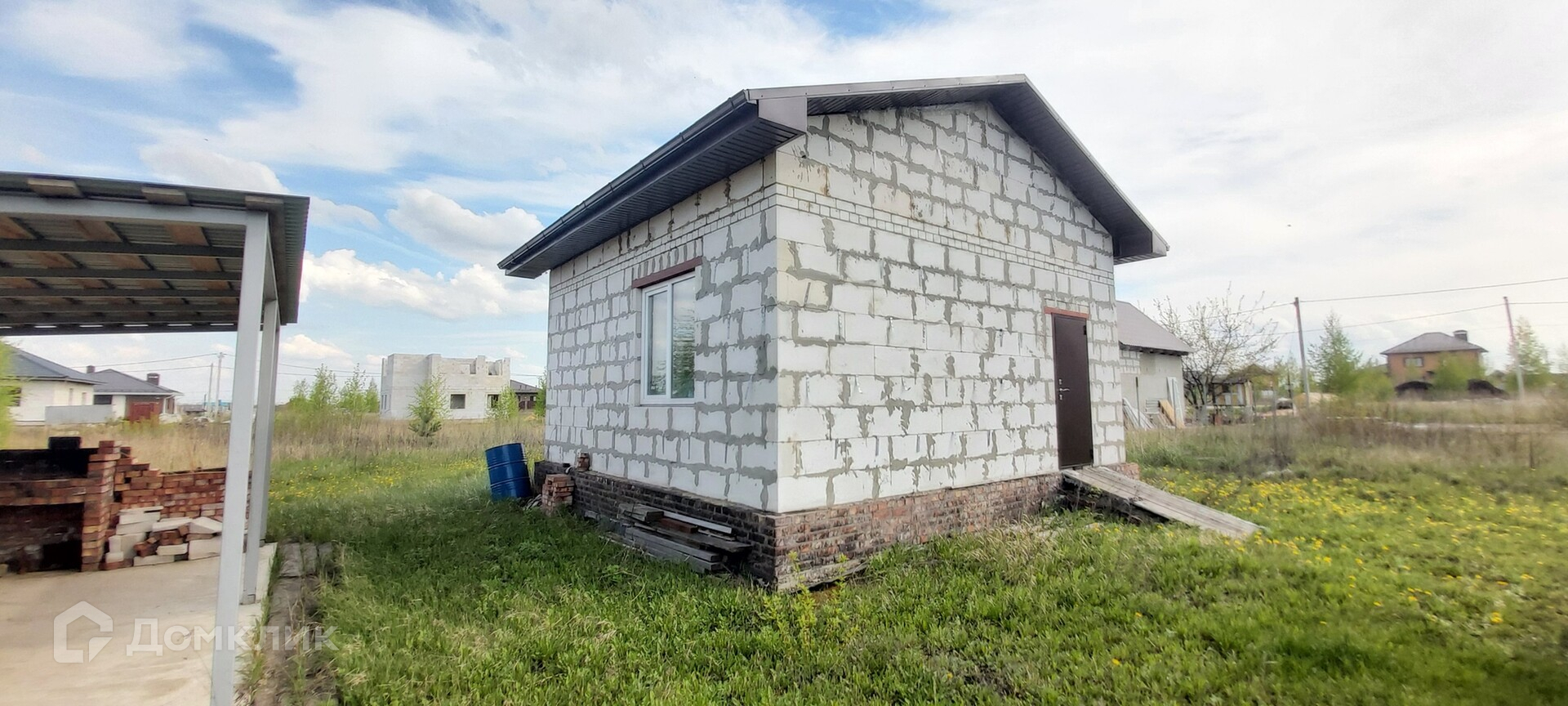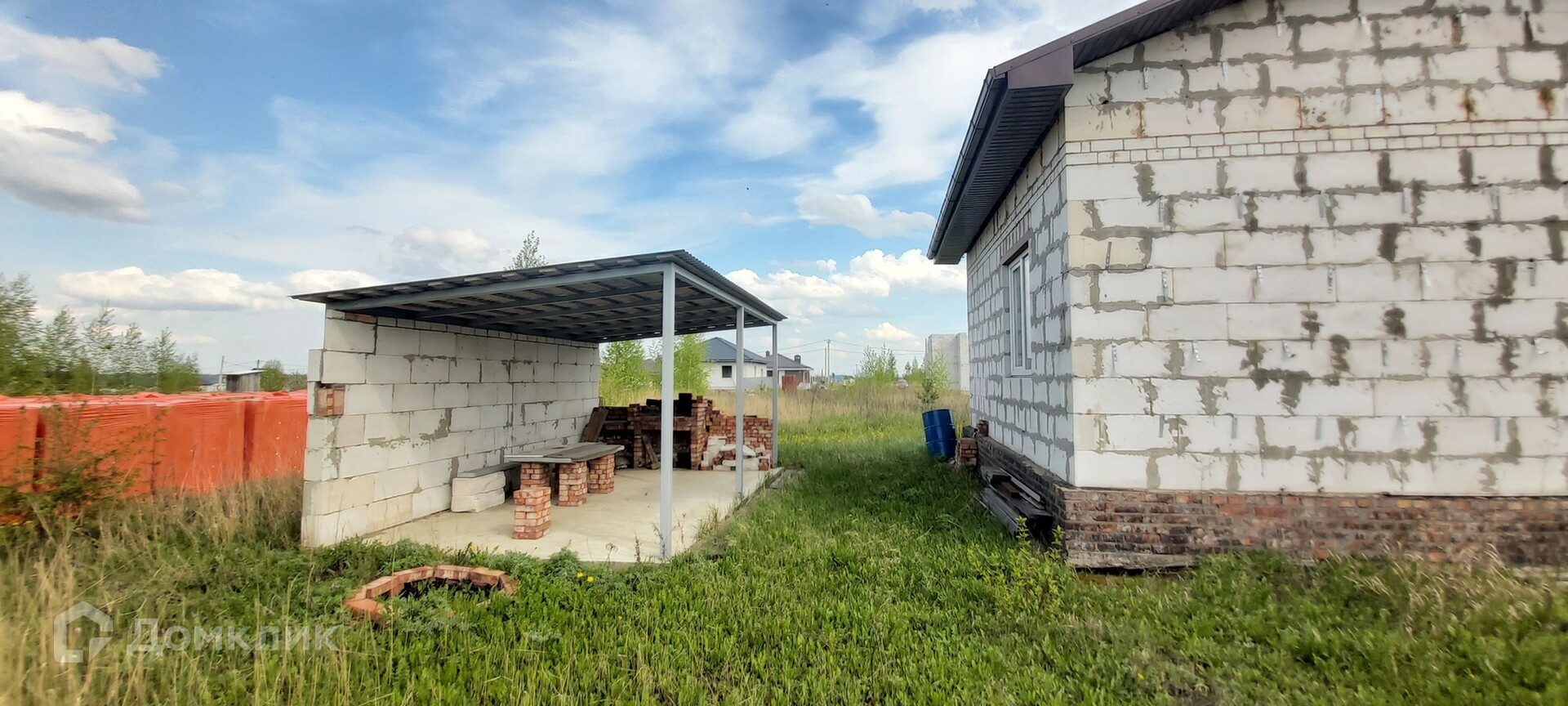 На территории участка также расположена уютная беседка площадью 6х3 метра с кирпичным мангалом. Одна из стен построена из блоков для защиты от ветра и защиты от яркого солнца.