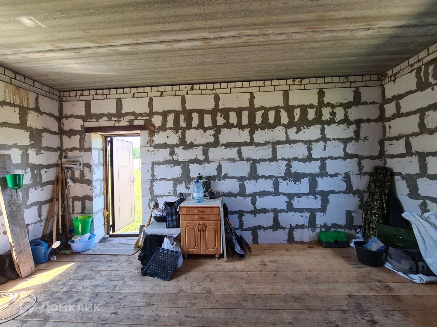 А что касается самого здания, то его габариты составляют 6х6 метров, а фундамент выполнен из свайно-ростверковых блоков высотой 500 мм, опирающихся на 1800, что обеспечивает возможность строительства второго этажа (по проекту так и планировалась). Стены газобетонные, толщиной 400 мм. Канализация сделана в колодец. Отделка фасада может быть любой: кирпич, штукатурка или сайдинг - на ваше усмотрение! Внутри дома очень хорошая теплоизоляция, что обеспечивает прохладу даже в самую жару. Здание уже стоит уже 5 лет, но ни одной трещины!
