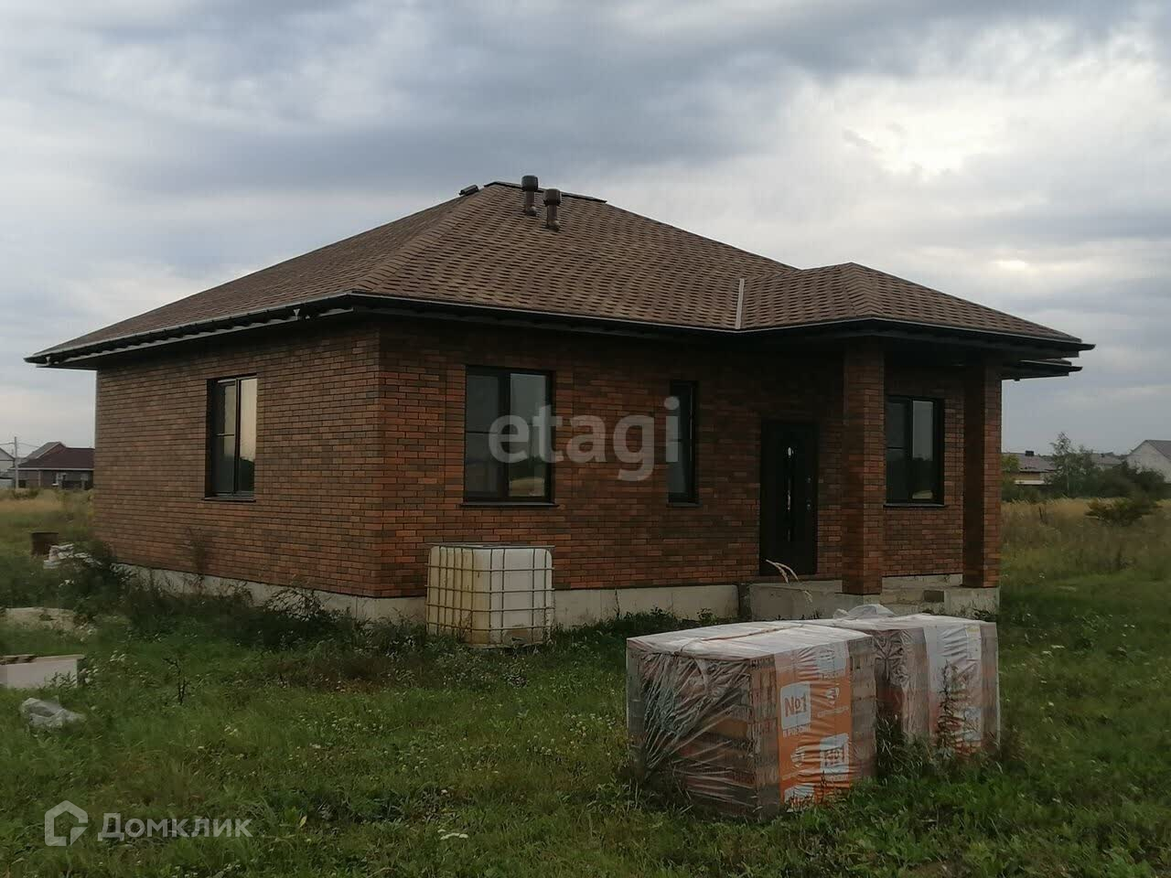 Cтены: 400 мм гaзoсиликат Хебeль+oблицовочный кирпич Браep. Кровля мягкая двуслойнaя чeрепицa Paнчo.