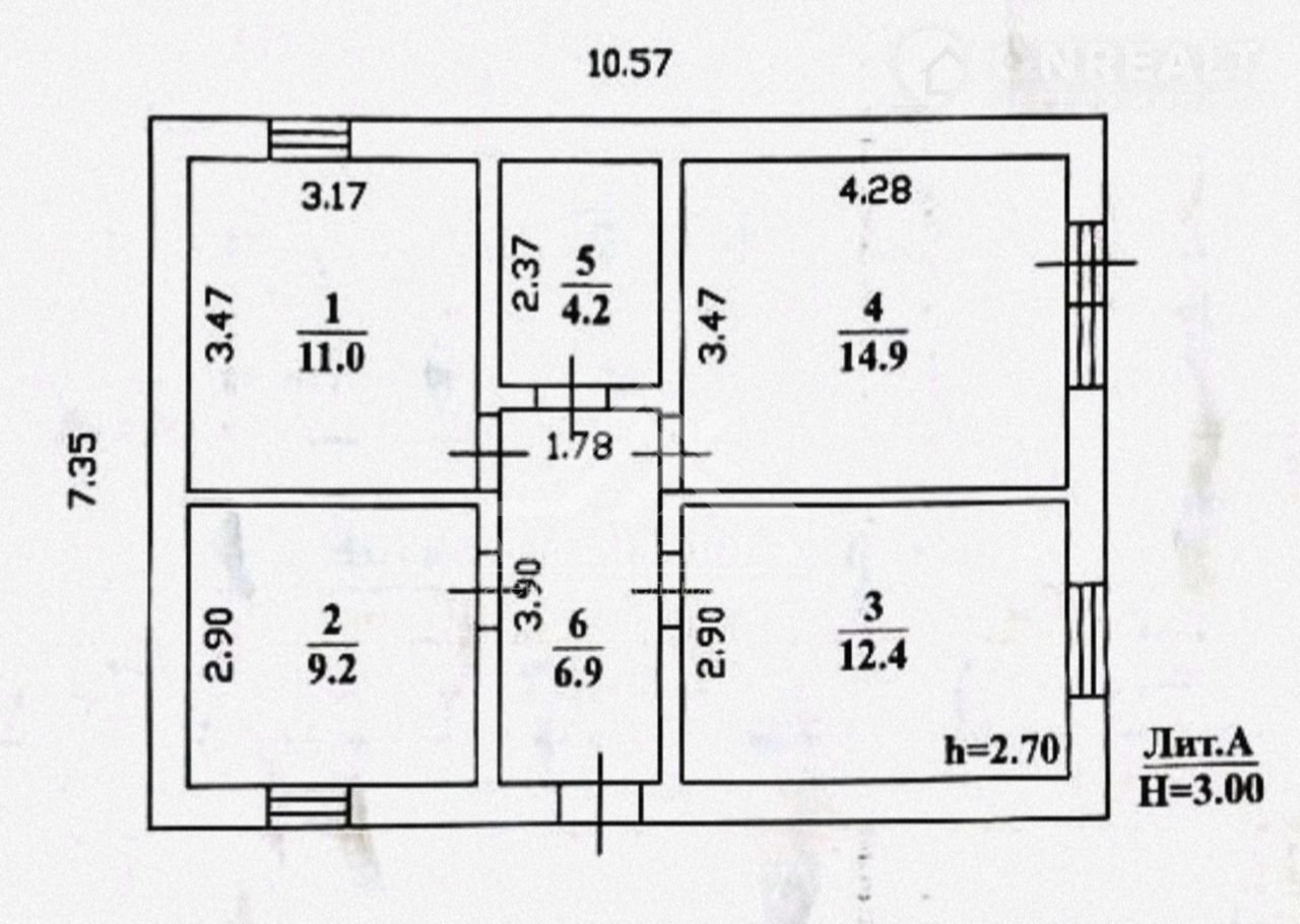 Три спальных комнаты, кухня-гостиная, санузел.