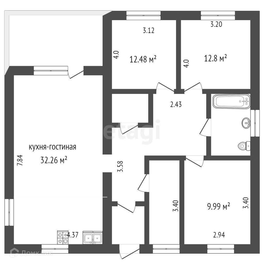 Общая площадь 102.6 м2