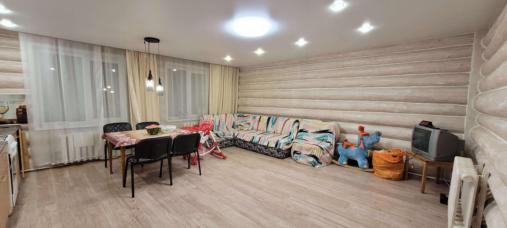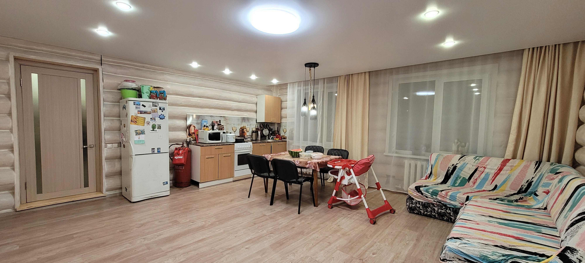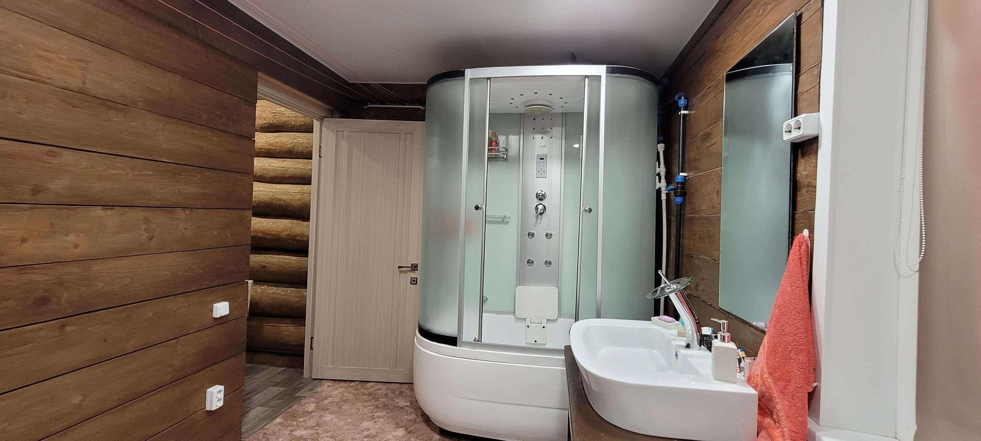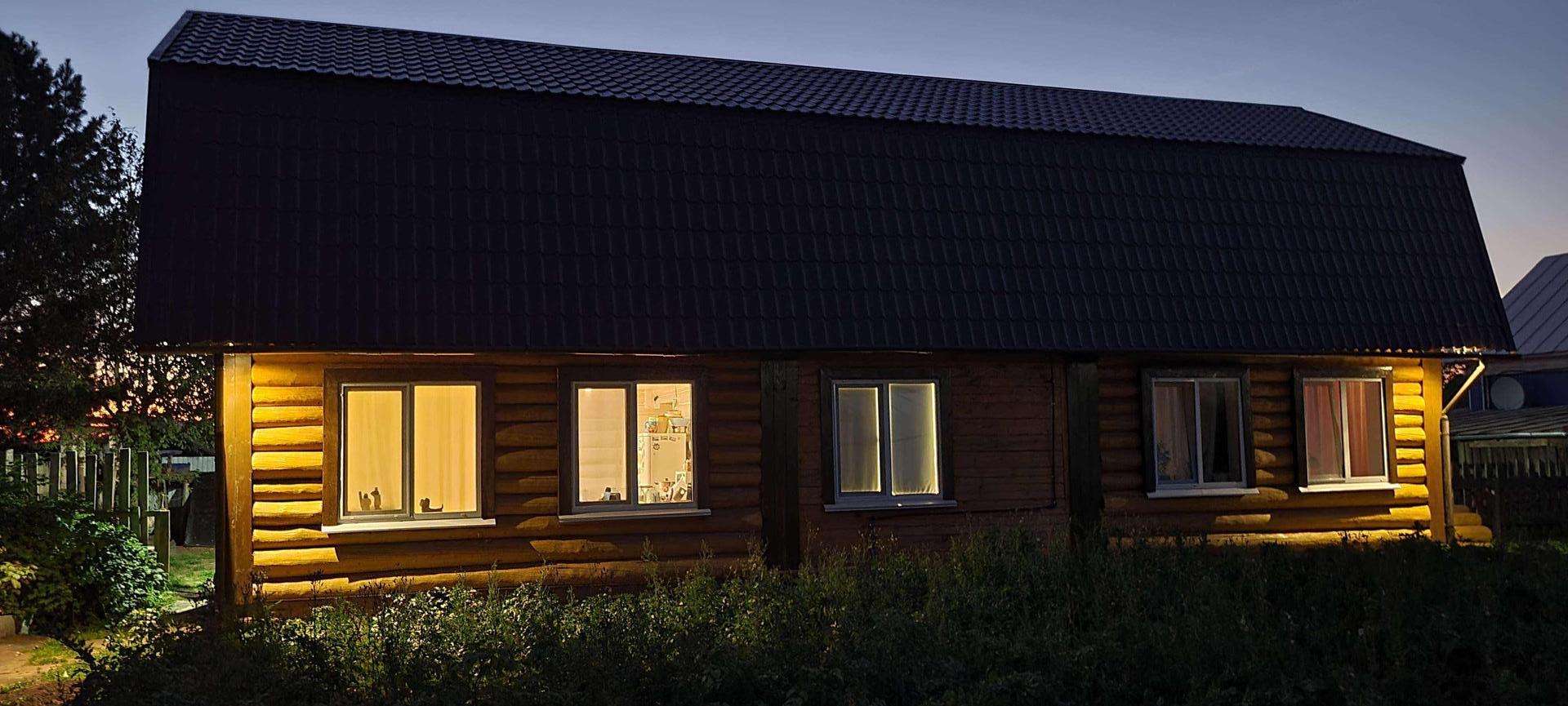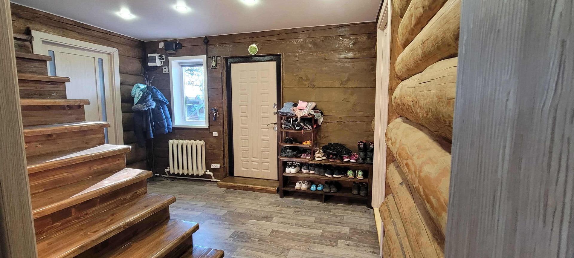 Шикарный дом из рубленного бревна (диаметр от 30 до 45 мм) построен с соблюдением всех норм, правил и стандартов деревянного строительства: сруб выстаивался, фундамент прочный, покрытие бревна современными антисептиками и декоративными материалами. Укладка брёвен на мох, изнутри сделан тёплый шов.