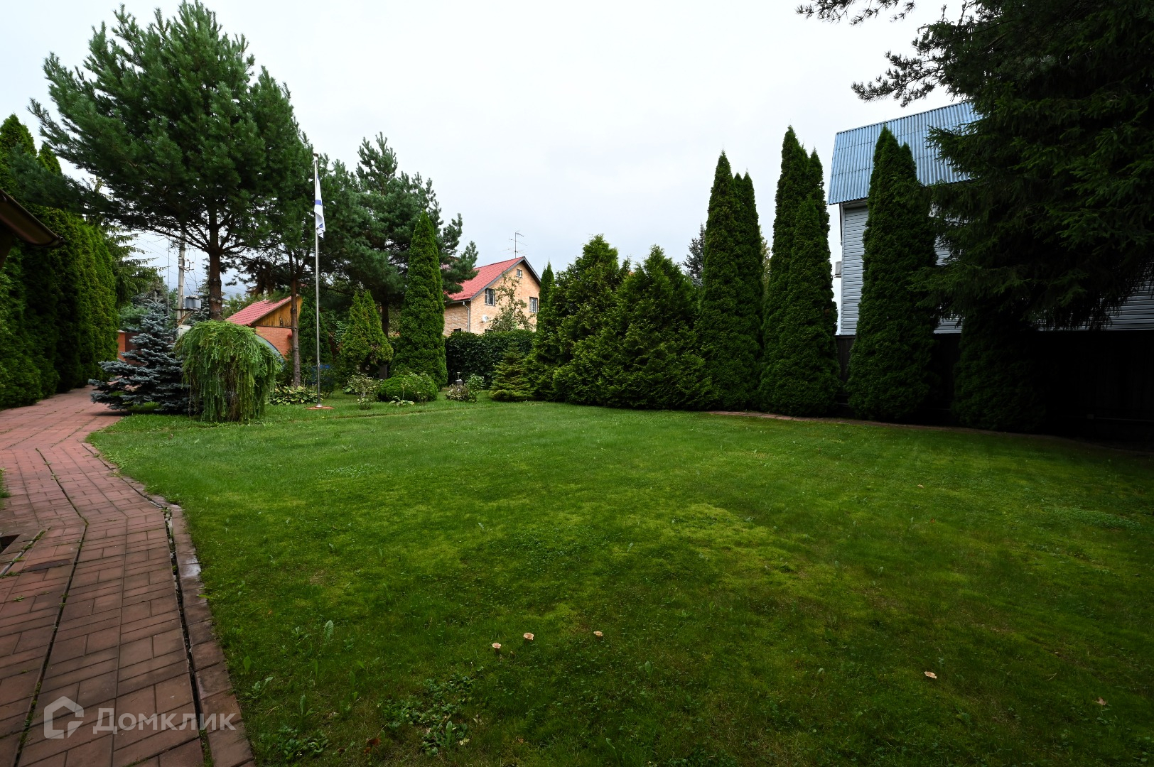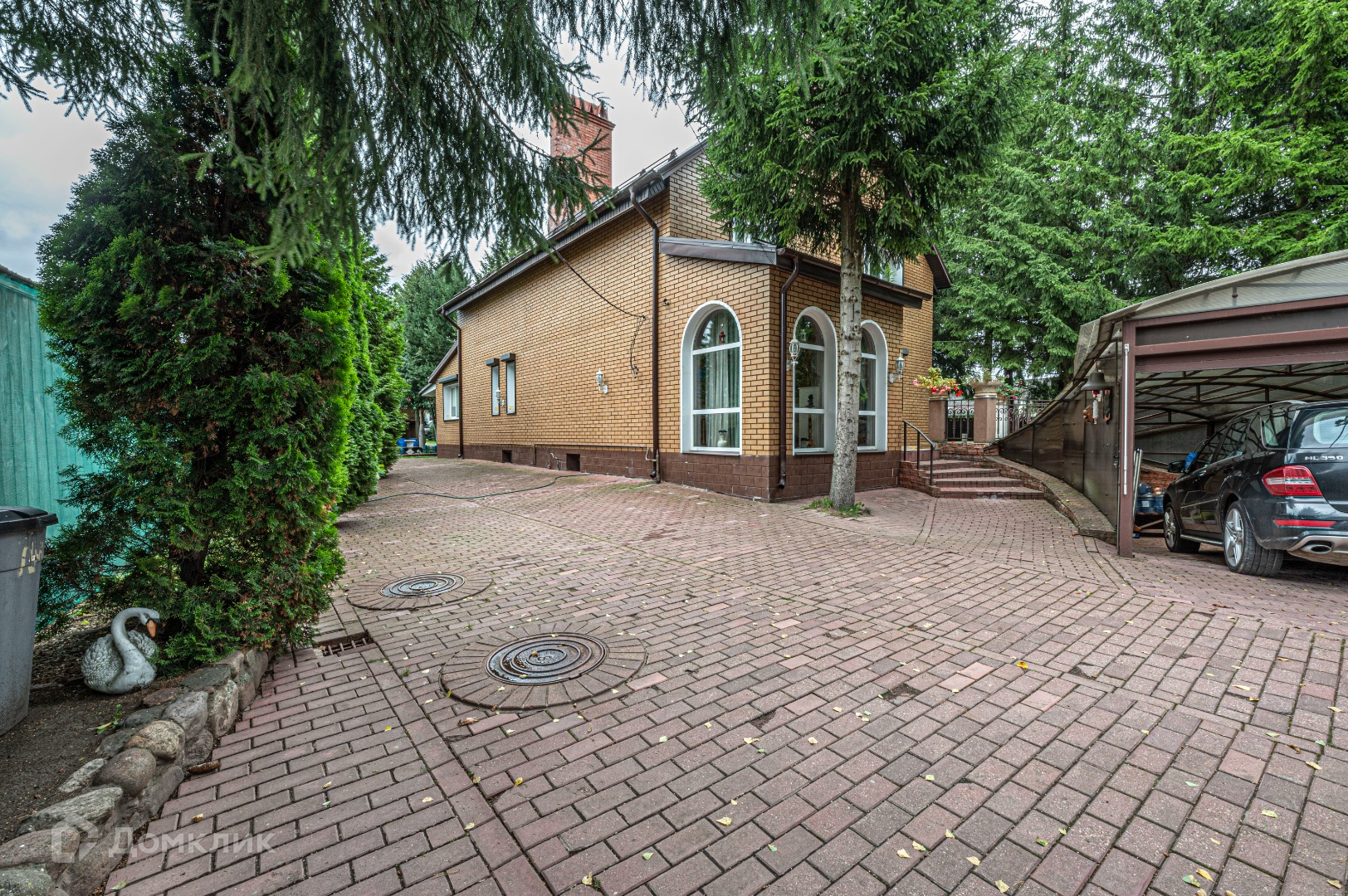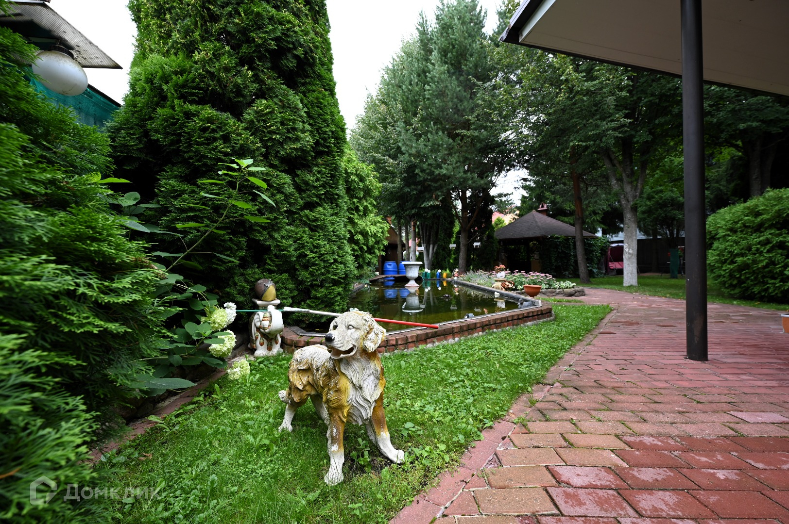 Дом расположен на ухоженном участке 18,26 соток. На участке расположены прекрасный пруд, летняя кухня с дровником, беседка с мангальной зоной, русская баня, большой открытый бассейн, гараж. Открытая парковка на 4 автомобиля и парковка под навесом на 1 автомобиль. На ландшафтном участке растут взрослые лесные деревья, ели, туи, разбиты цветники. Въезд на участок осуществляется с двух сторон с двух улиц, при желании можно припарковать еще до 5 автомобилей.