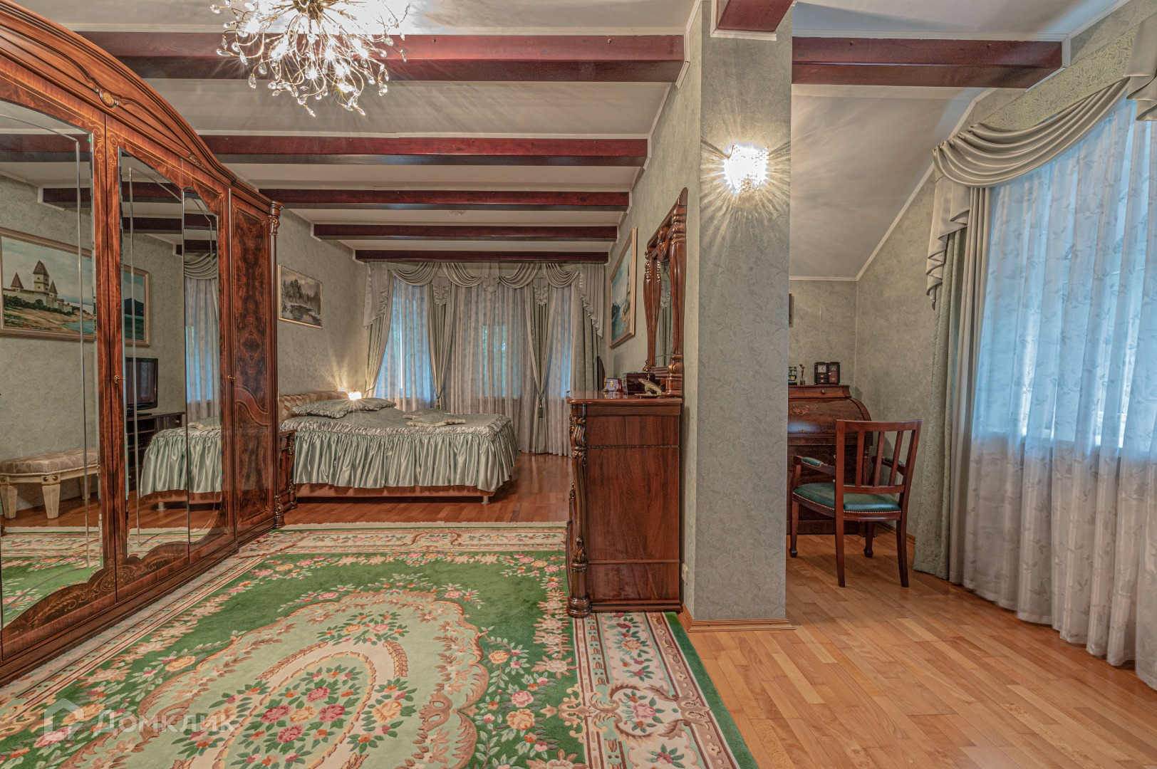 В доме два жилых этажа, плюс SPA цокольный этаж и мансарда. На первом этаже большая кухня и столовая, гостиная, спальня с гардеробной, небольшой зимний сад с выходом на открытую террасу, гостевой санузел. На втором этаже мастер-спальня, спальня с балконом, большой санузел, кабинет. Большая мансарда с окнами, которую можно использовать как библиотеку или детскую игровую комнату. В цокольном этаже сауна с большим глубоким бассейном, комнатой отдыха с санузлом, бойлерной, комната для бильярда, кладовыми. При желании, комнату для бильярдной можно переделать как подземный гараж для автомобиля, для чего она, собственно, и предусматривалась. Бойлерная укомплектована котлом и бойлером косвенного нагрева фирмы Будерус. Санузел укомплектован стиральной и сушильной машиной. К дому примыкает навес для автомобиля, который одновременно является спуском\въездом в цокольный гараж