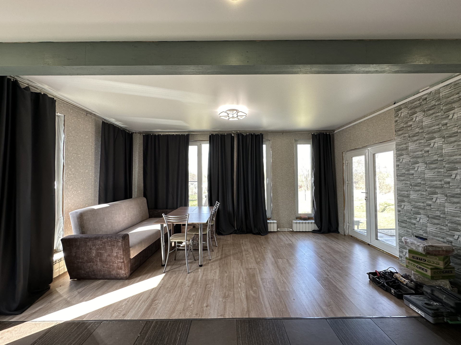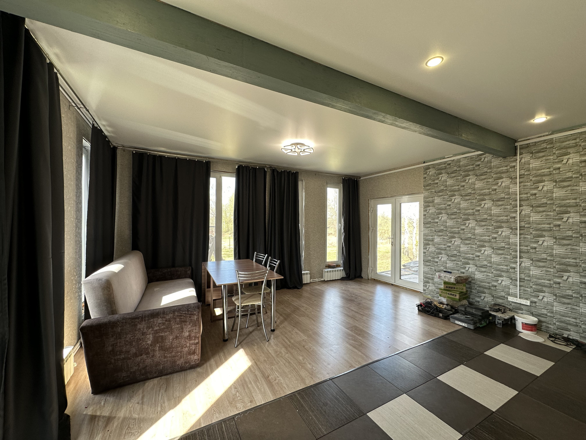 Дом "Райд" построен по проекту компании "СИПТЕХ" из сип панелей площадью 117.7 кв.м. включая площадь веранды. Внутренняя отделка дома выполнена.