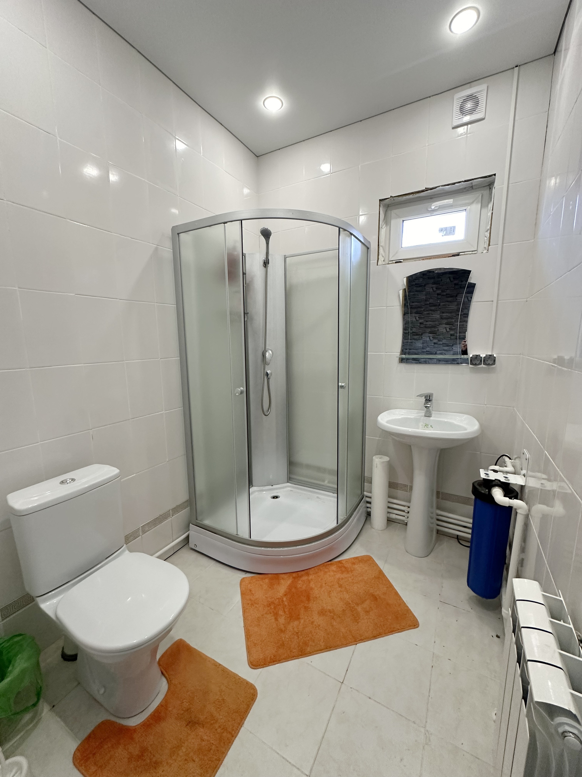 Все коммуникации заведены в дом: электричество 15 кВт (3 фазы, трёхфазный тариф), газ, центральное водоснабжение, канализация -септик (станция Евролос БИО 3). Газовый котел Buderus Logamax U072-24K (двухконтурный).