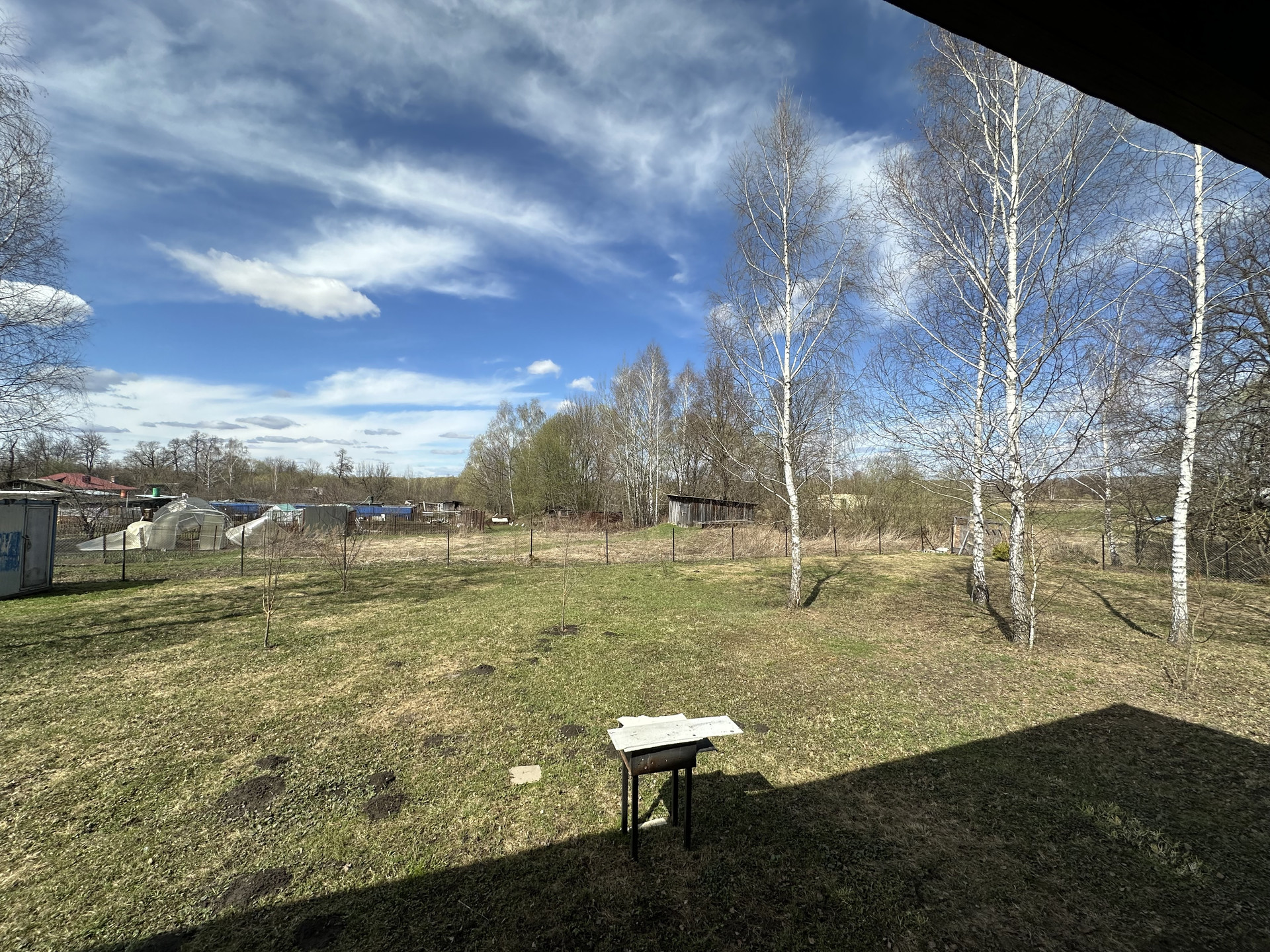 Участок огорожен по периметру, фронтальный забор из евроштакетника. Соседи только по одной стороне.