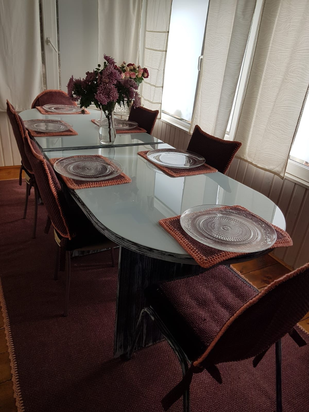 Общая площадь с балконом - 110 кв.м. Внутри предчистовая отделка, стены отделаны короедом.