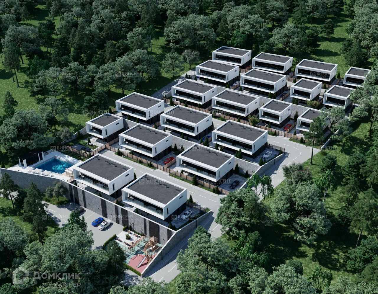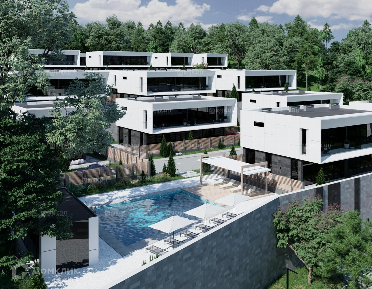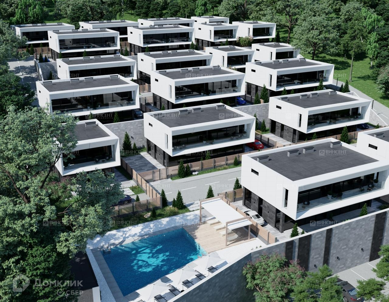 Каскадное расположение домов, гарантирует абсолютную приватность, и сохранение вида!