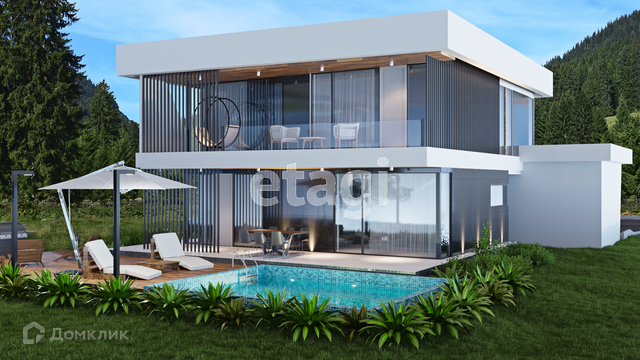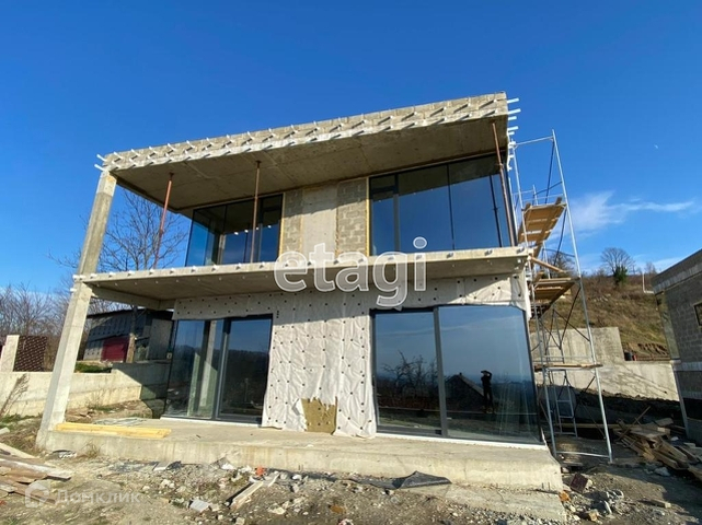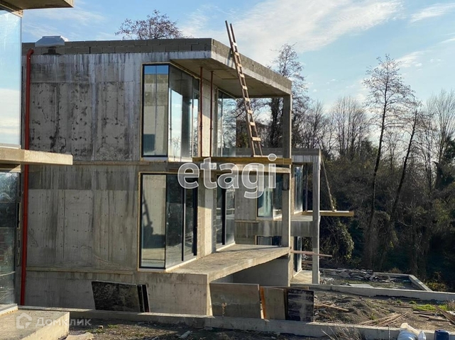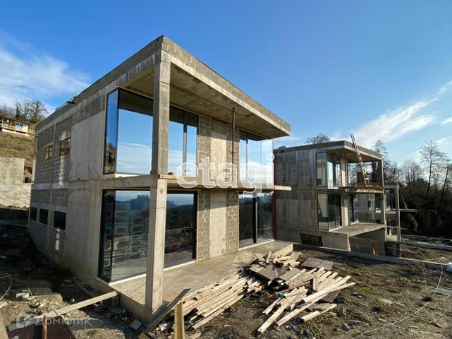 Продается новый коттедж в стиле хайтек, площадью 220 м². Расположен в уникальном месте города Сочи, в районе улицы Саят-Нова. С одной стороны в 10 минутах езды от центра города, с другой в окружении национального парка, с панорамным видом на город и море. В строительстве использованы только самые современные строительные материалы. В отделке фасадов применяются закаленное стекло, декоративная штукатурка и натуральное дерево,  установлены алюминиевые витражи. На участке площадью 4 сотки смонтирован переливной бассейн с подогревом, освещением и системой фильтрации. Инженерные коммуникации коттеджа: электричество 15 кВт, скважина, система очистки сточных вод. Дом сдаётся с улучшенной черновой отделкой, будет произведён монтаж внутренних перегородок и их штукатурка, обустроена стяжка пола. В коттедже монтируется тёплый пол и выполняется прокладка каналов для установки кондиционеров. Отличное инвестиционное предложение, а также вариант для личного проживания.
