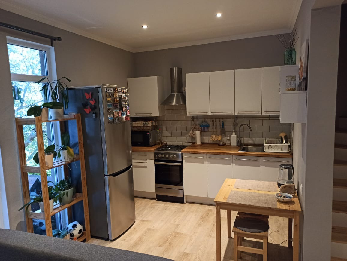 Окна пластиковые, уютный дом с правильным расположение комнат, с косметическим ремонтом. 1 этаж - прихожая зона и хол, котельная, с/у, бассейн, сауна, гараж, комната отдыха. 2 этаж- прихожая зона и хол, кухня-столовая, гостиная, 2 спальни, с/у.
