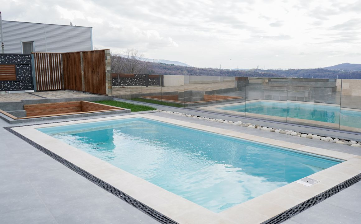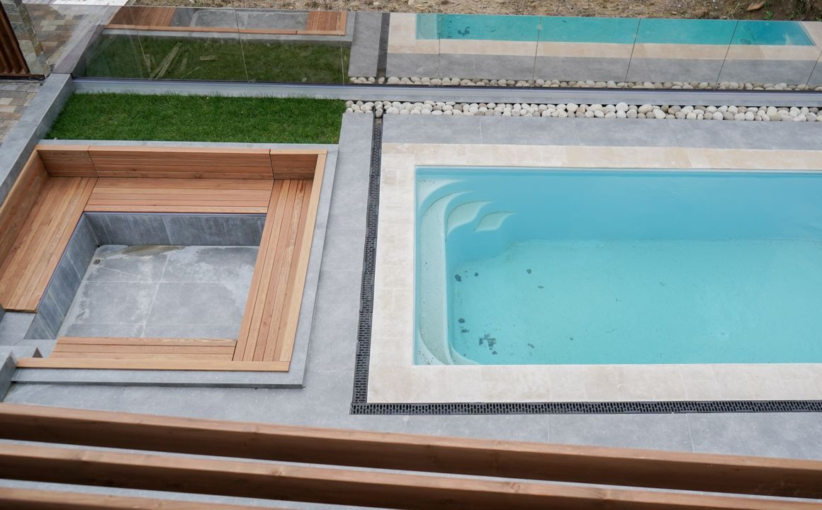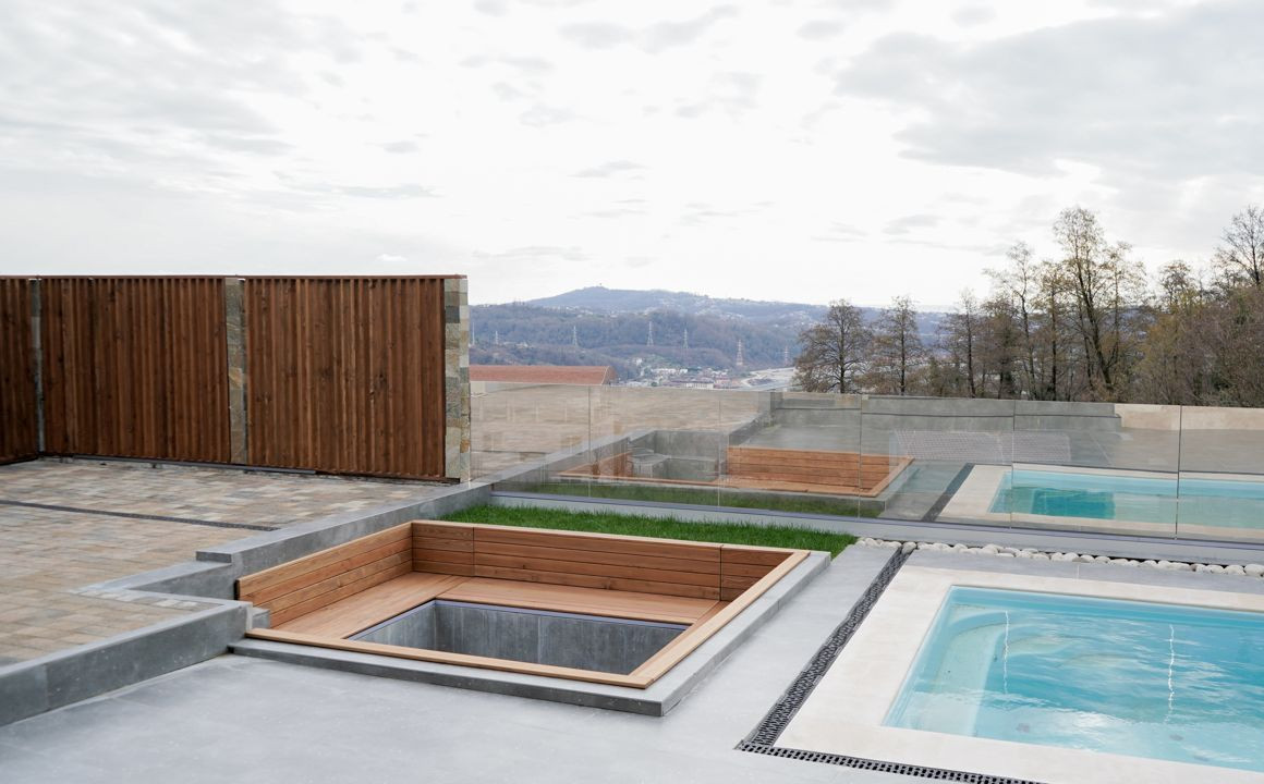 На участке организована зона отдыха и выполнено озеленение, костровая для приятных вечеров, подогреваемый бассейн.