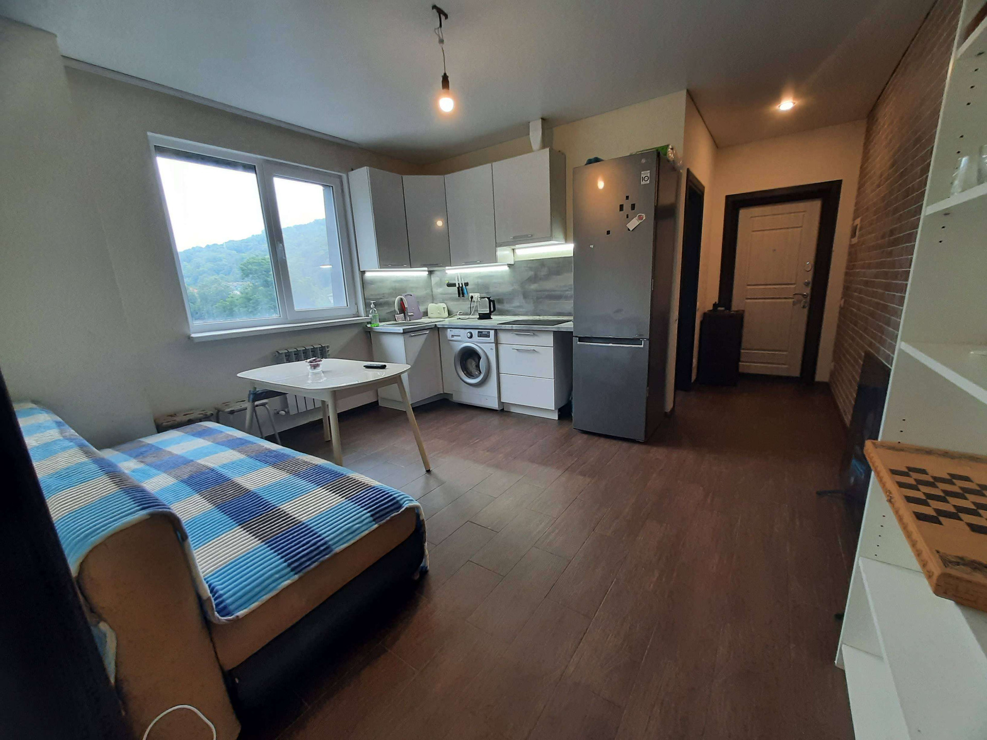 Собственник !!! Статус Квартира ,плюс  доля земли в собственности. Полноценная спальная комната , жилая кухня , совмещённый санузел. Новому владельцу останется  всё! Мебель и техника, на фото все прекрасно видно.  В ванной и на кухне тёплые полы , положена качественная плитка, зделана шумоизоляция три световые точки . В доме газовое отопление от своей котельной . Очень удобная планировка . Квартира не большой квадратуры,  но очень просторная, с шикарным видом на горы. Очень тихий район, читый воздух. Рядом с домом остановка , магазины. Риелторы ,звоните только исключительно с клиентами , просто так показывать вам не буду, и звонить  с предложением заключить договор смысла нет.