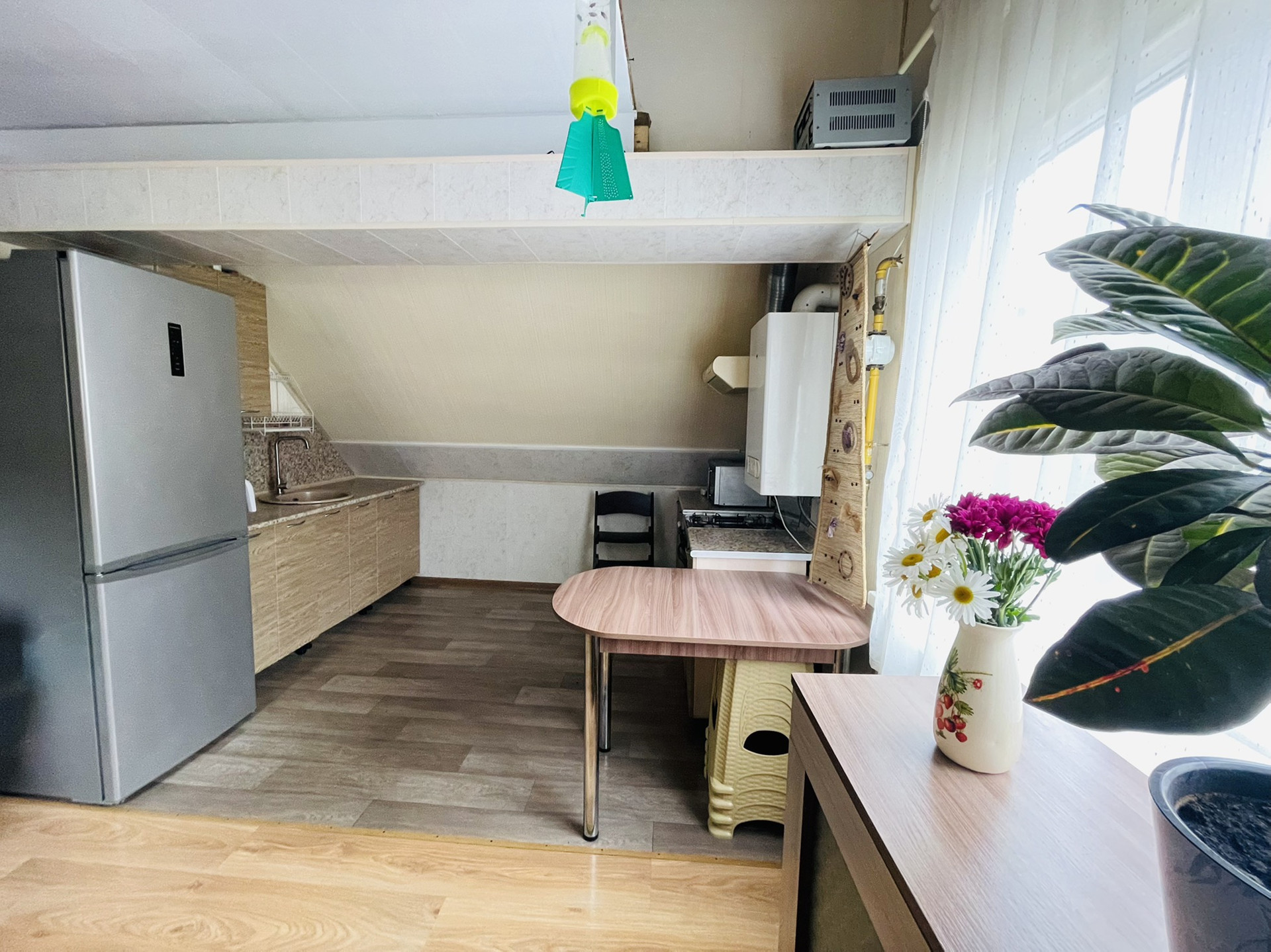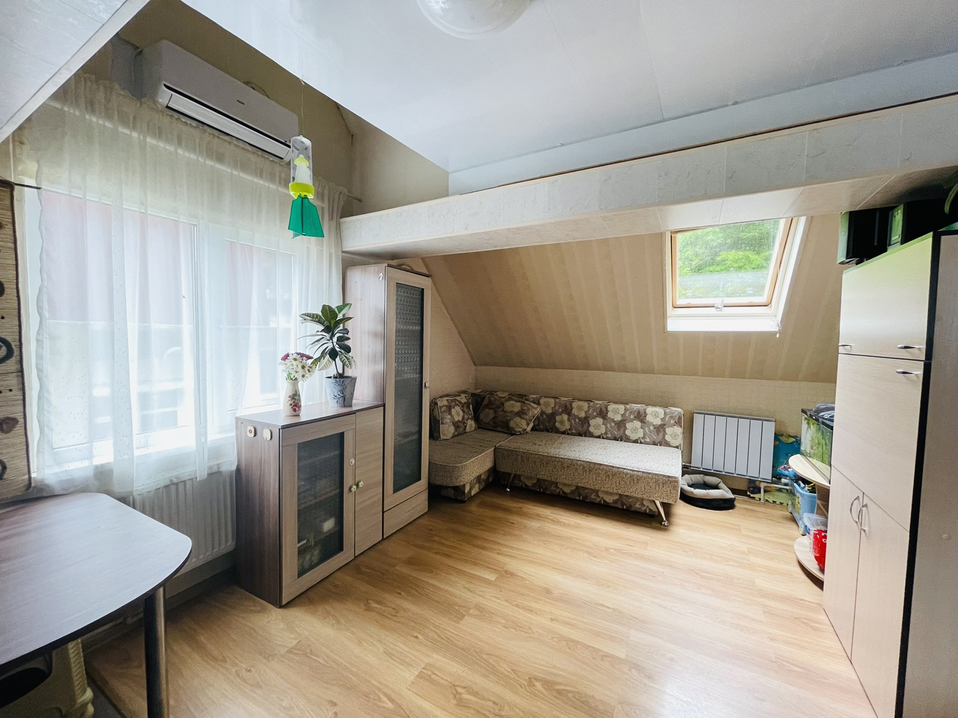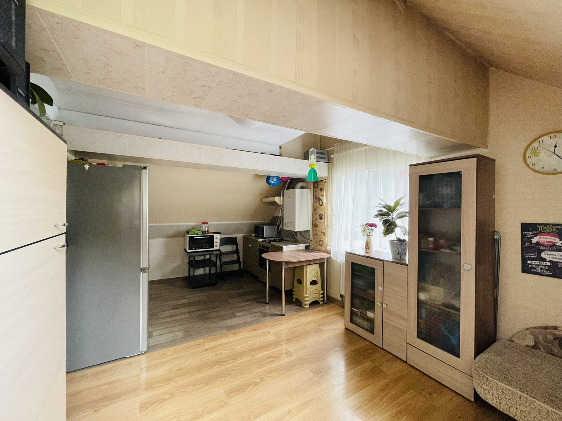 В квартире сделан хороший ремонт (делали для себя). Также квартира удобно распланирована: прихожая, санузел, изолированная комната и кухня-гостиная. Перед домом есть зона отдыха с мангалом и беседкой. Можно посадить огород.
