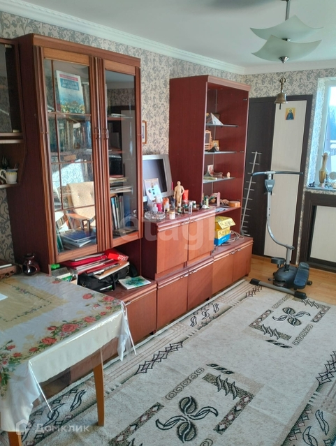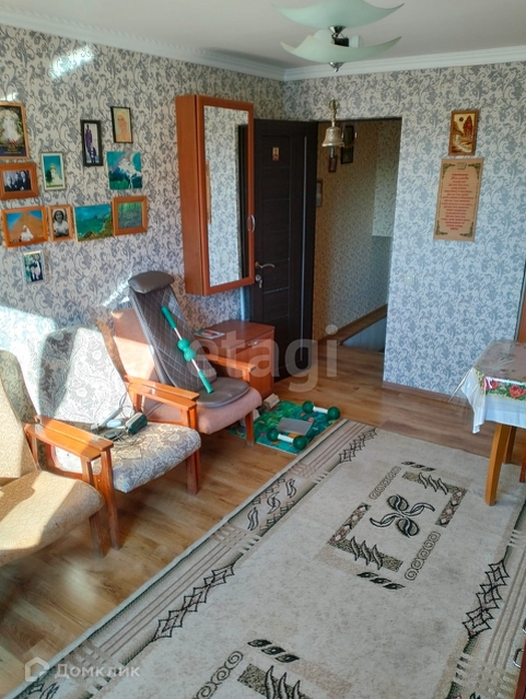 Пол - ламинат, стены - обои, межэтажные перекрытия железобетонные, кровля - металлопрофиль.