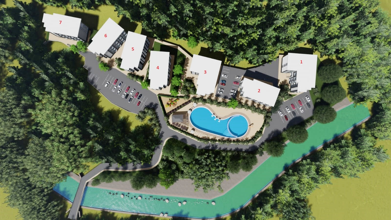 На территории АК будет располагаться большой бассейн с зонами отдыха, детской площадкой, зоной воркаут и зоной барбекю, площадкой для игры в бадминтон.