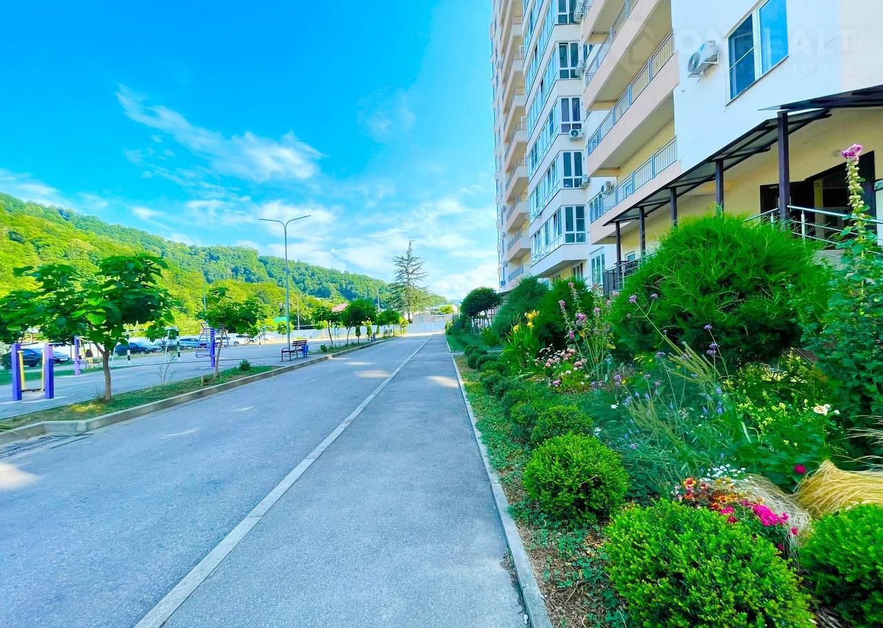 - Хочу обратить ваше внимание, что территория комплекса большая, огороженная, охраняемая, под видеонаблюдением. На территории есть огромный бесплатный паркинг, несколько детских и спортивных зон, управляющая компания тщательно следит за чистотой и ландшафтным озеленением. Хочу так же отметить, что за территорией комплекса есть проход к горной реке и лесу, где можно искупаться и провести классно время с семьей в жаркие сочинские дни. Комплекс расположен между двух холмов, утопающих в зелени, что создает определенную приватную атмосферу взаимодействия с природой.