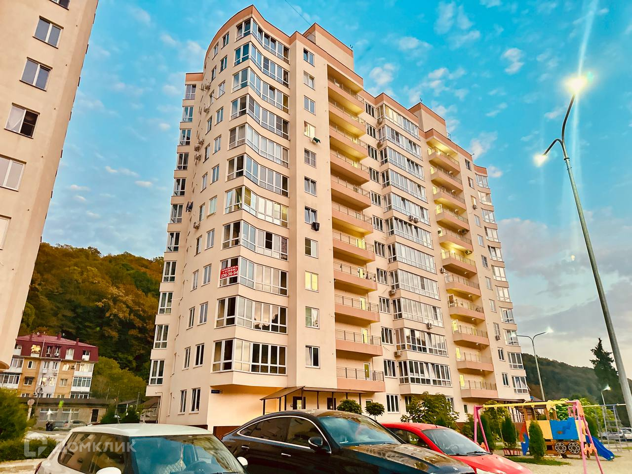 Продается  однокомнатная квартира, площадью 26 кв.м. в живописном спальном районе Сочи, в ЖК Измайловский парк. Квартира имеет правильную планировку, большое панорамное окно, что делает ее очень светлой и теплой.Дом построен в соответствии с законом 214ФЗ, сдача произошла в 2022 году.Комплекс комфорт класса, закрытая территория, детские площадки, красивое ландшафтное озеленение, много парковочных мест.Остановка общественного транспорта -100 м. Вокруг горы. Зелень. Рядом есть реконструированная набережная реки Мацеста , природные достопримечательности, где можно прогуляться (орлиные скалы, водопады, чайные плантации).