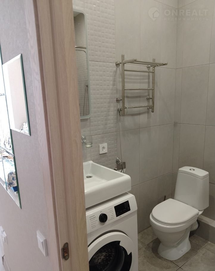 В ванне присутствует душевая кабина открытого типа, раковина, унитаз, стиральная машина и электрический полотенцесушитель, теплый пол в ванной и коридоре.