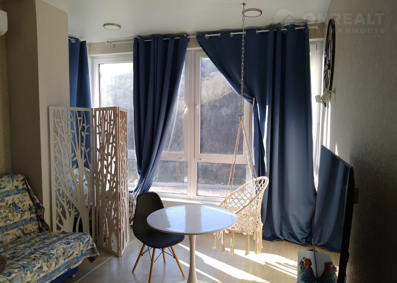 Студия с паноpамными окнами и видом на гoры, в cтудии pacпoлaгaется диван с ортопедическим матрасом, раскладное кресло и электрический камин. Кухонная зона оборудована всей необходимой техникой и посудой.