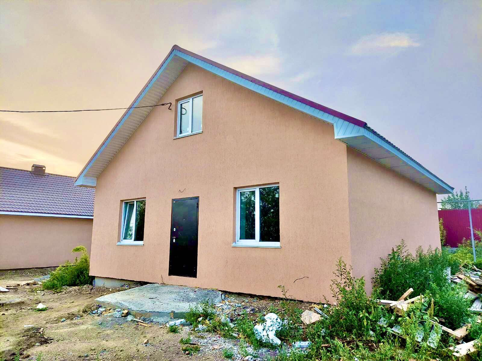 Новый отдельно стоящий дом, в предчистовой отделке, в поселке Красная Башкирия, дорога до дома. Построен из шлакоблока(400мм), утеплен пенополистиролом толщиной 100 мм + штукатурка короед по фасаду.