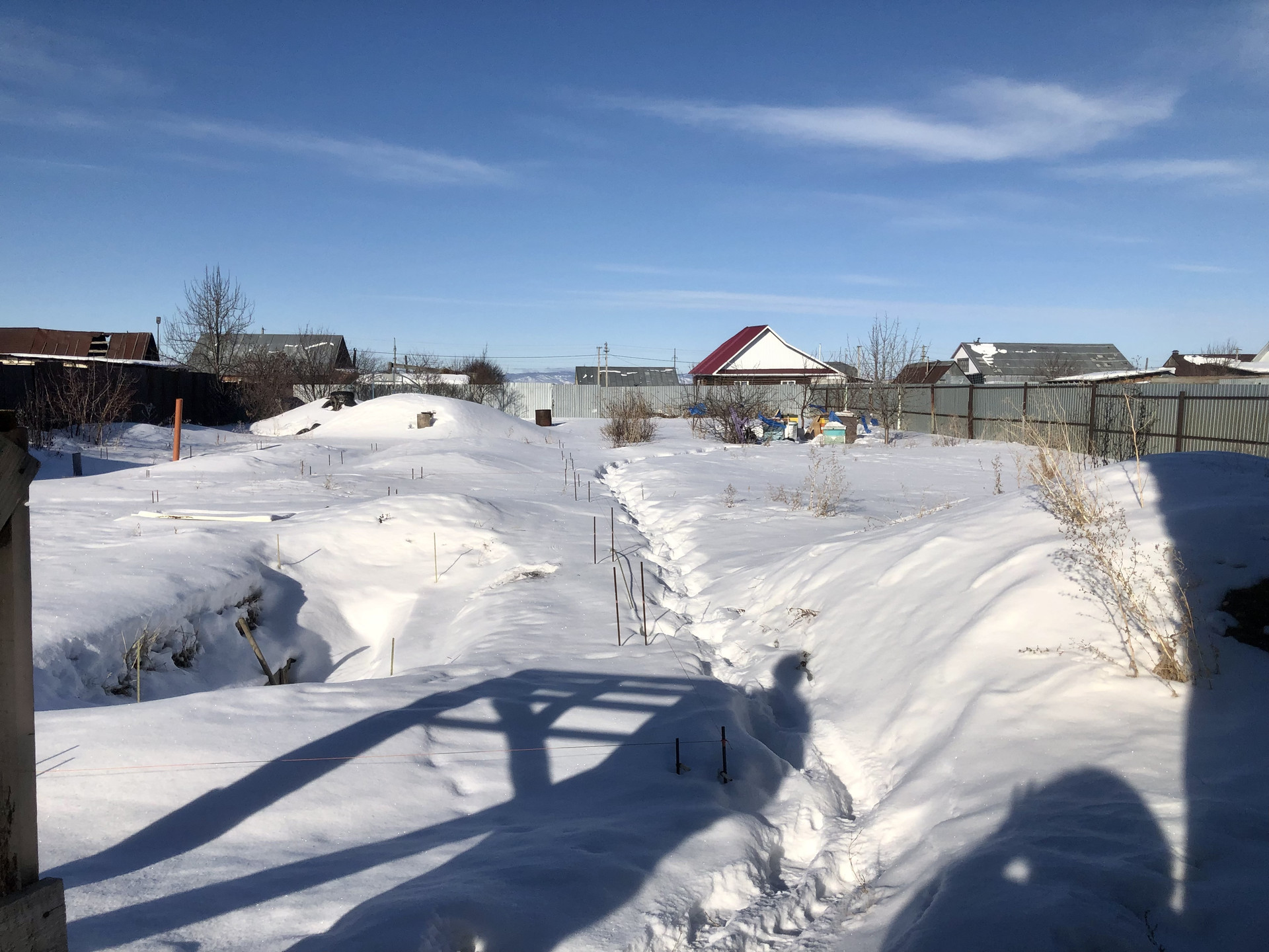 •Участок огорожен забором(спереди шлакоблок и кованые ворота с калиткой, в конце профлист), на участке залит фундамент под баню с комнатой отдыха и гаражом на две машины(схема-план имеется на фото), имеются плодово-ягодные посадки(яблоня, груша, абрикос, клубника, смородина и т.д.).