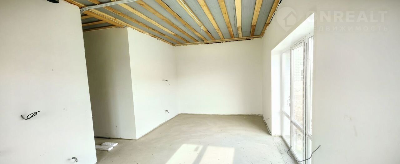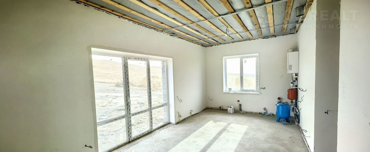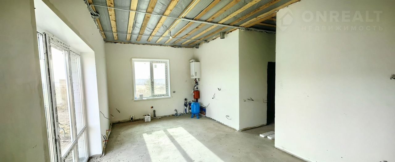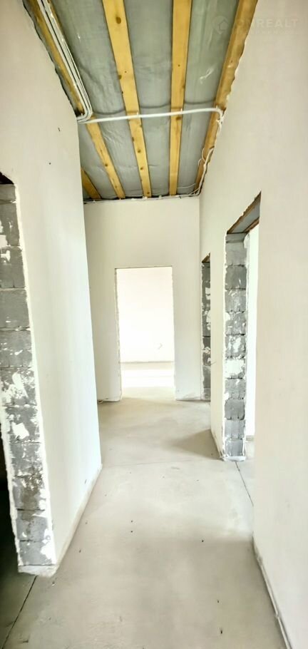 Дом в предчистовой отделке. Все перегородки из шлакоблока. Стены отштукатренны. Сделана разводка электрической проводки по всему дому. На окнах сделаны откосы и подоконники. Натяжные потолки. Теплый пол по типу водяного контура по всему дому.