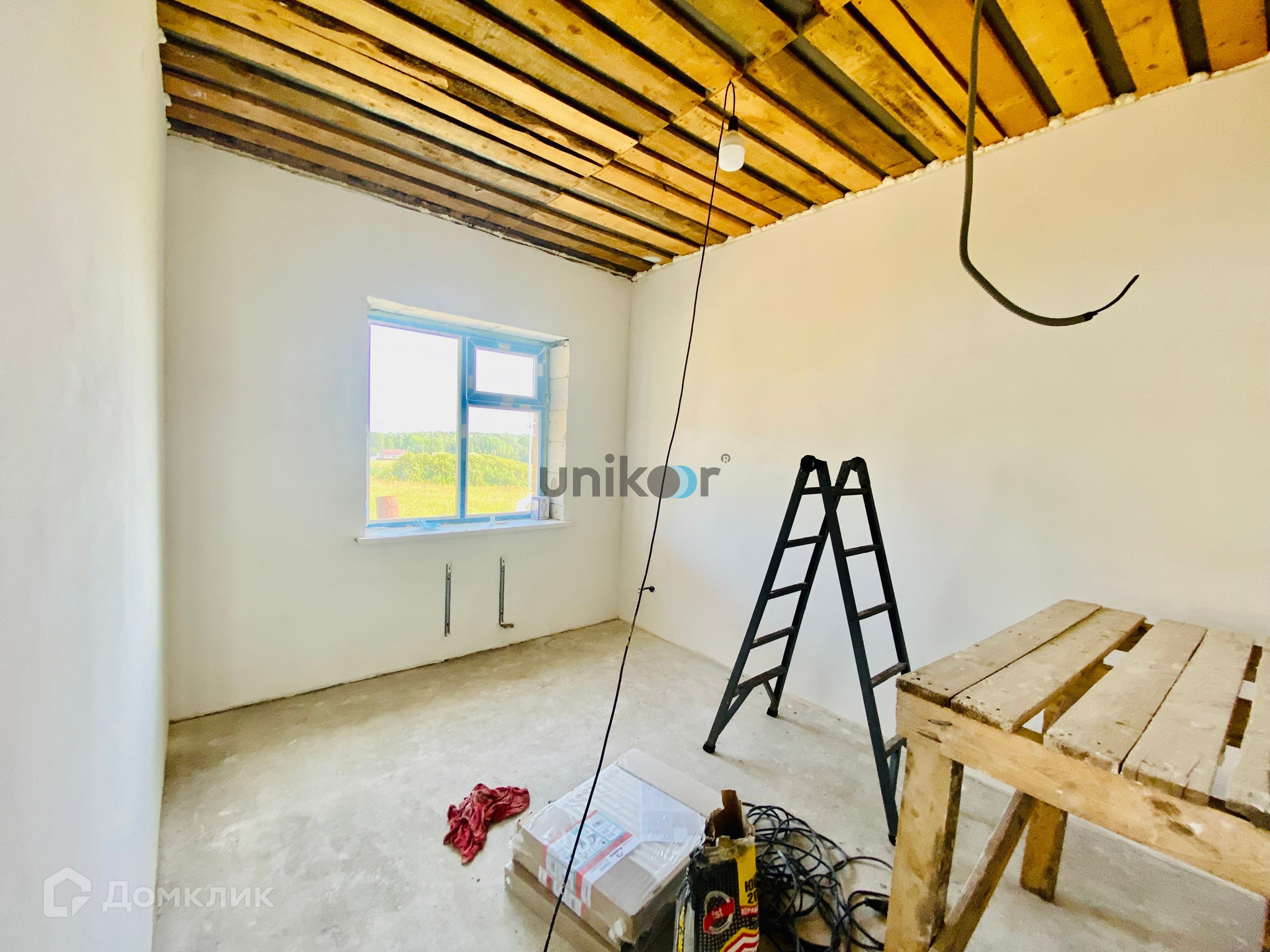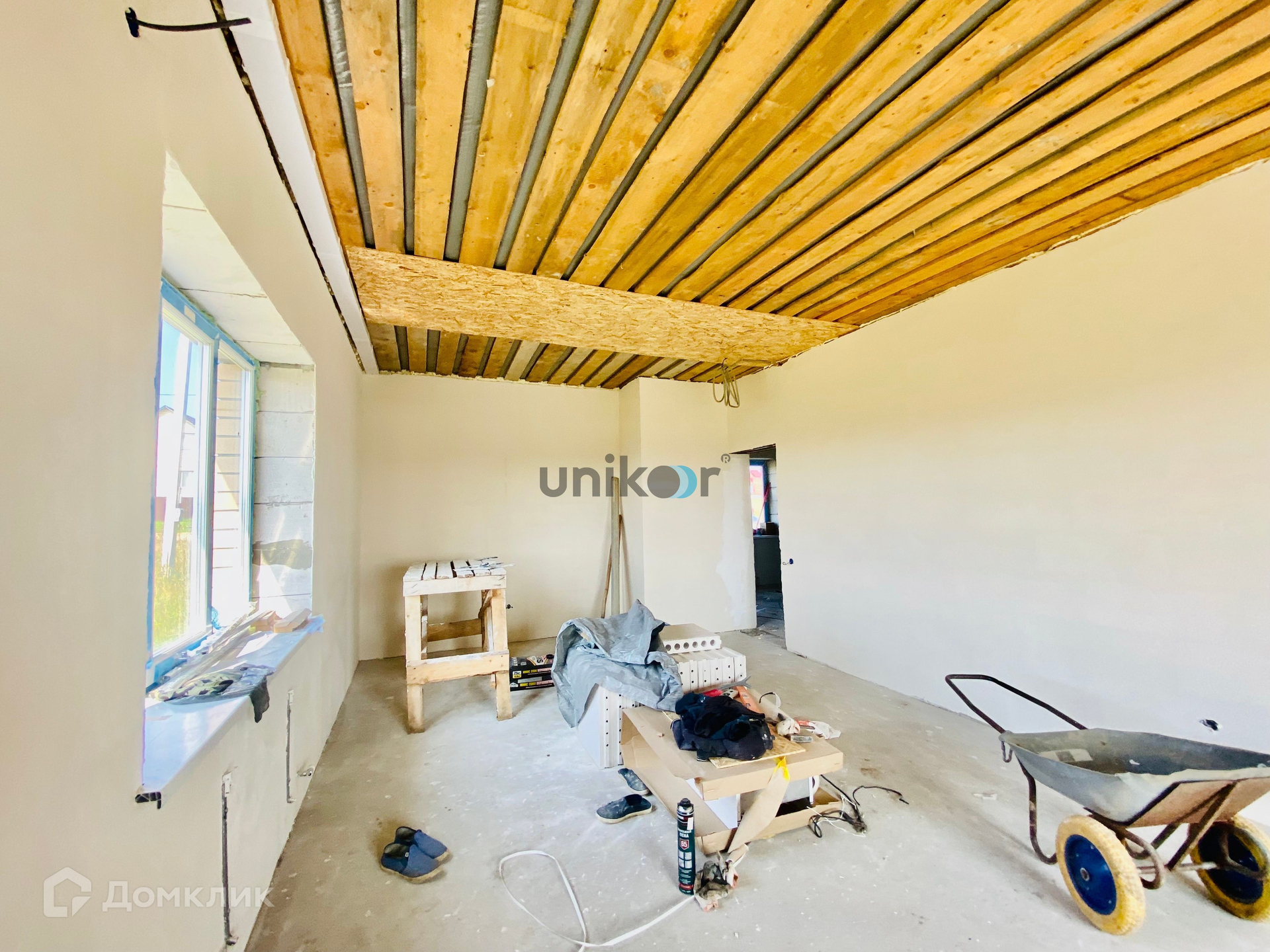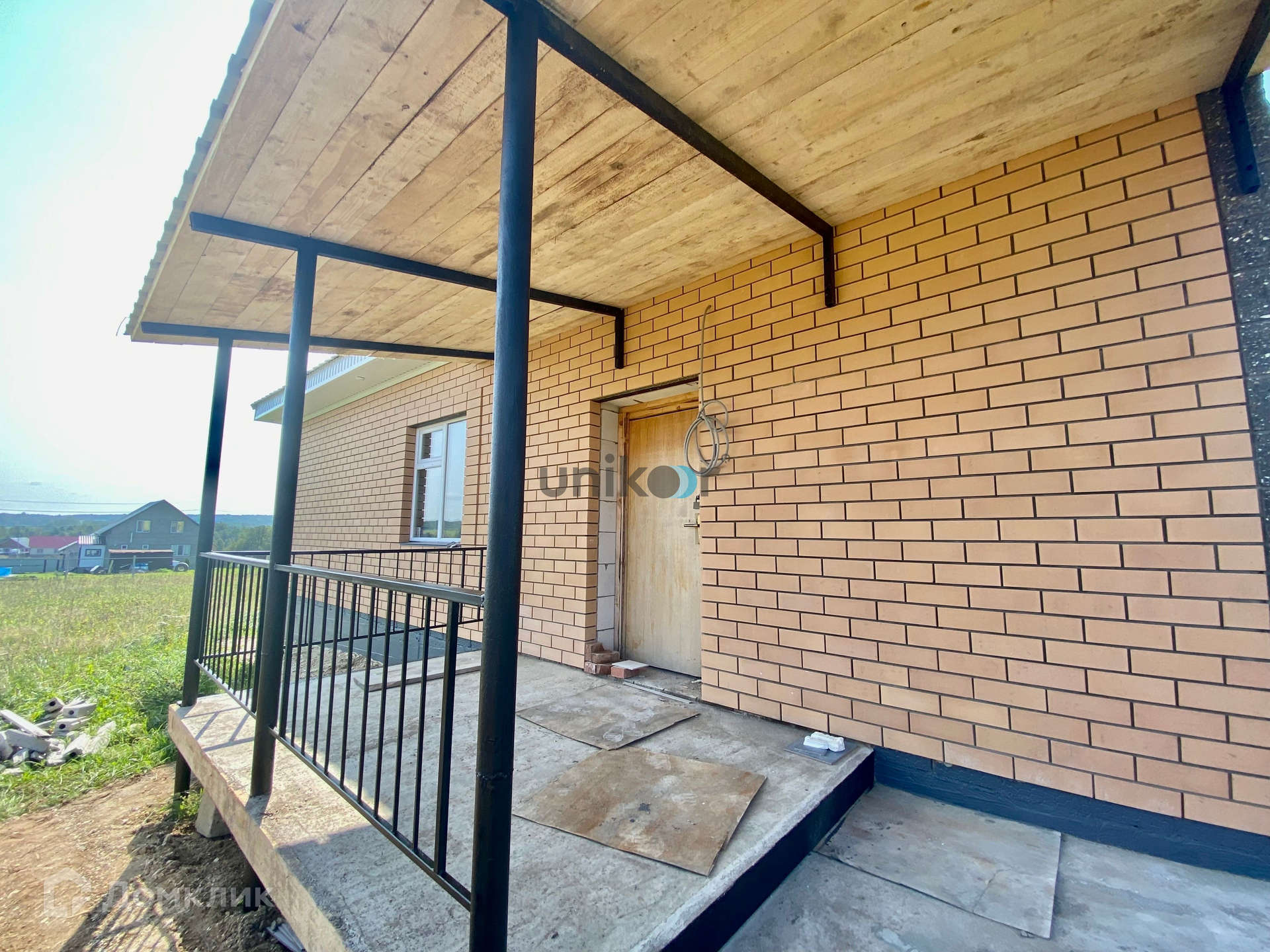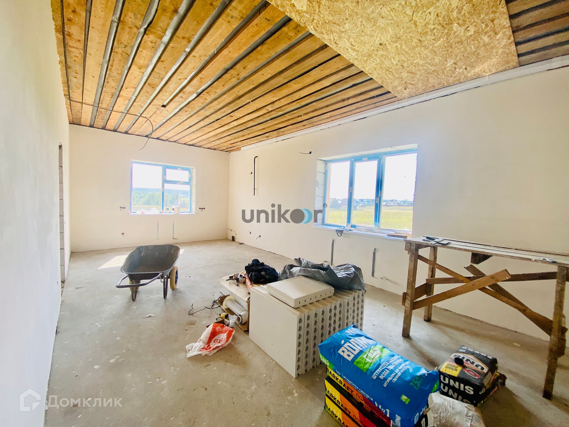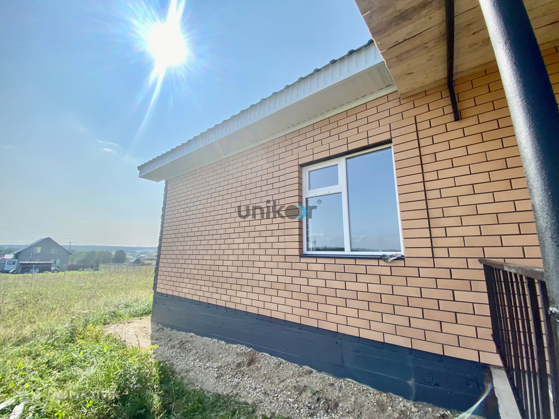 Дом построен из газоблока и облицован кирпичом. Возможно устройство второго этажа или высокой мансарды.