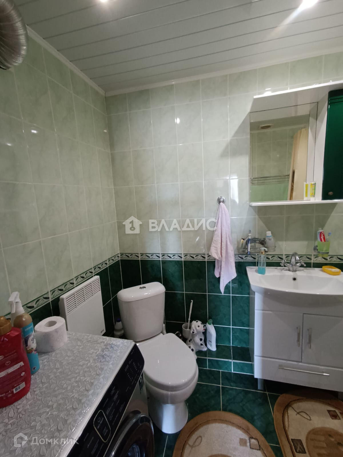 Санузел выполнен в современной кафельной плитке для удобства и стиля.