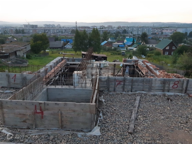 Фундамент уже готов, плита 10х10х0,35 м, стены плиты 0,6 м. Есть стройматериалы, вода центральная проведена, электричество 380V, дом в процессе строительства, на фото цокольный этаж в котором планируется гараж на два авто, погреб, котельная, мастерская.