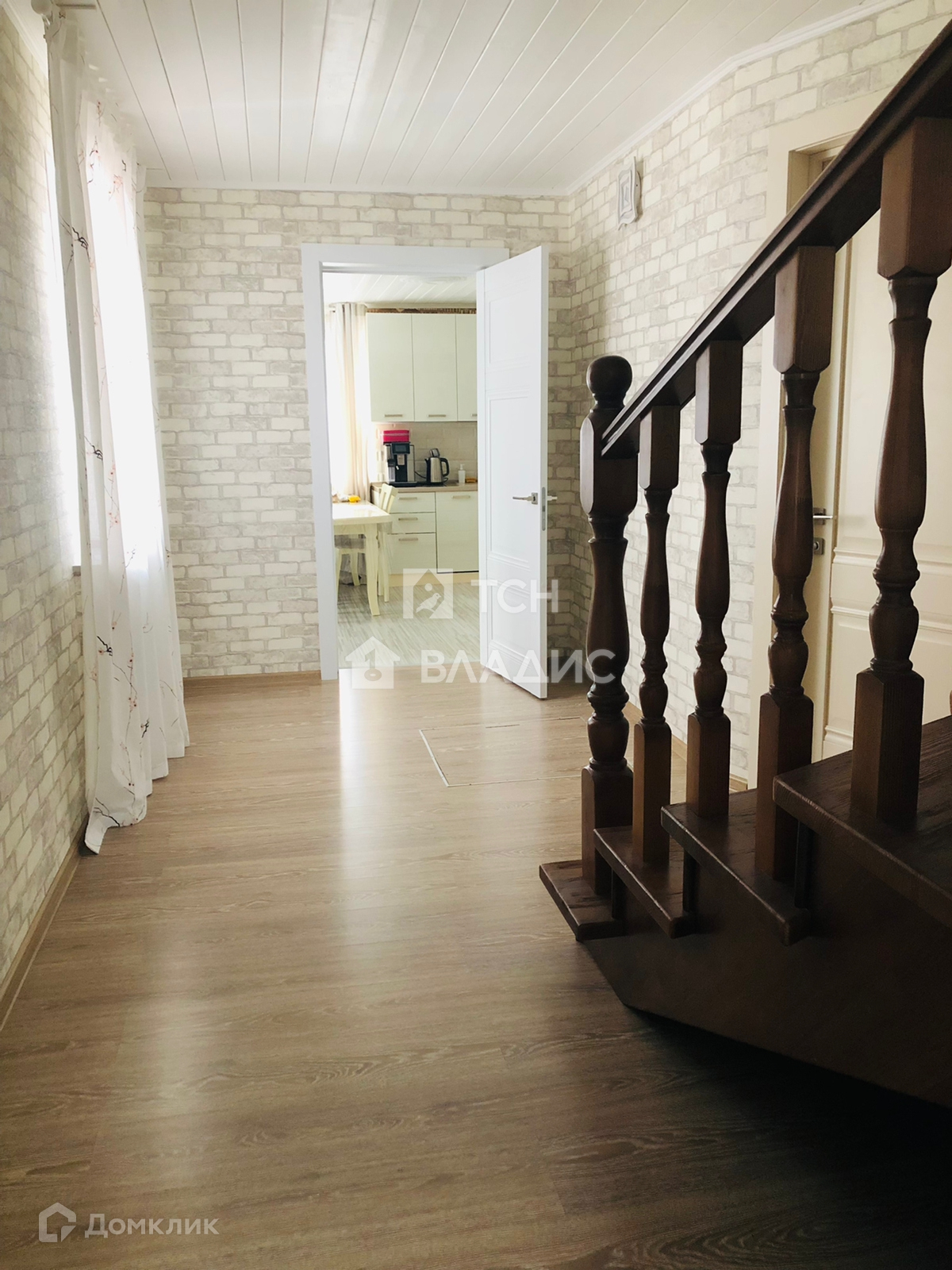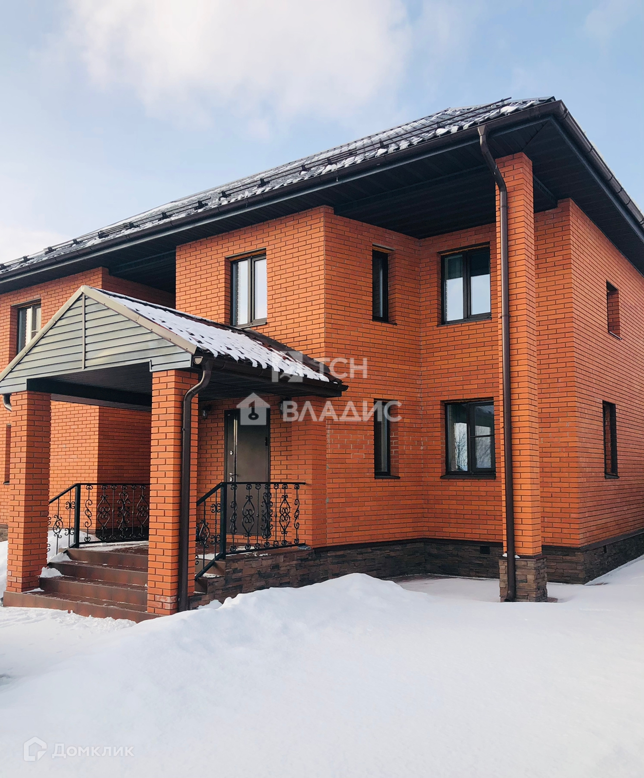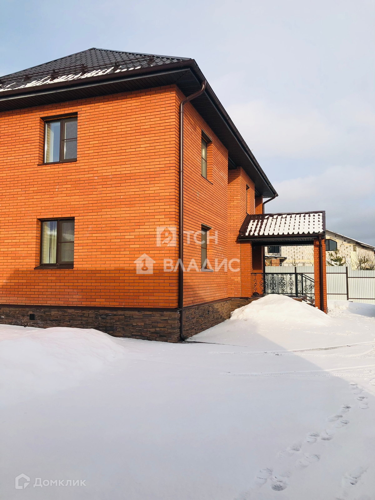 Снаружи дом отделан кирпичом. Крыша покрыта металлочерепицей, установлены окна ПВХ.