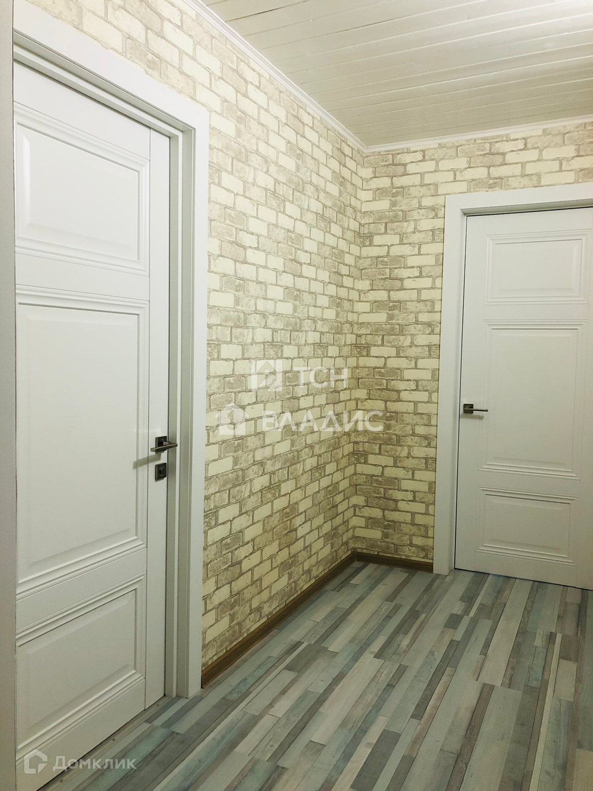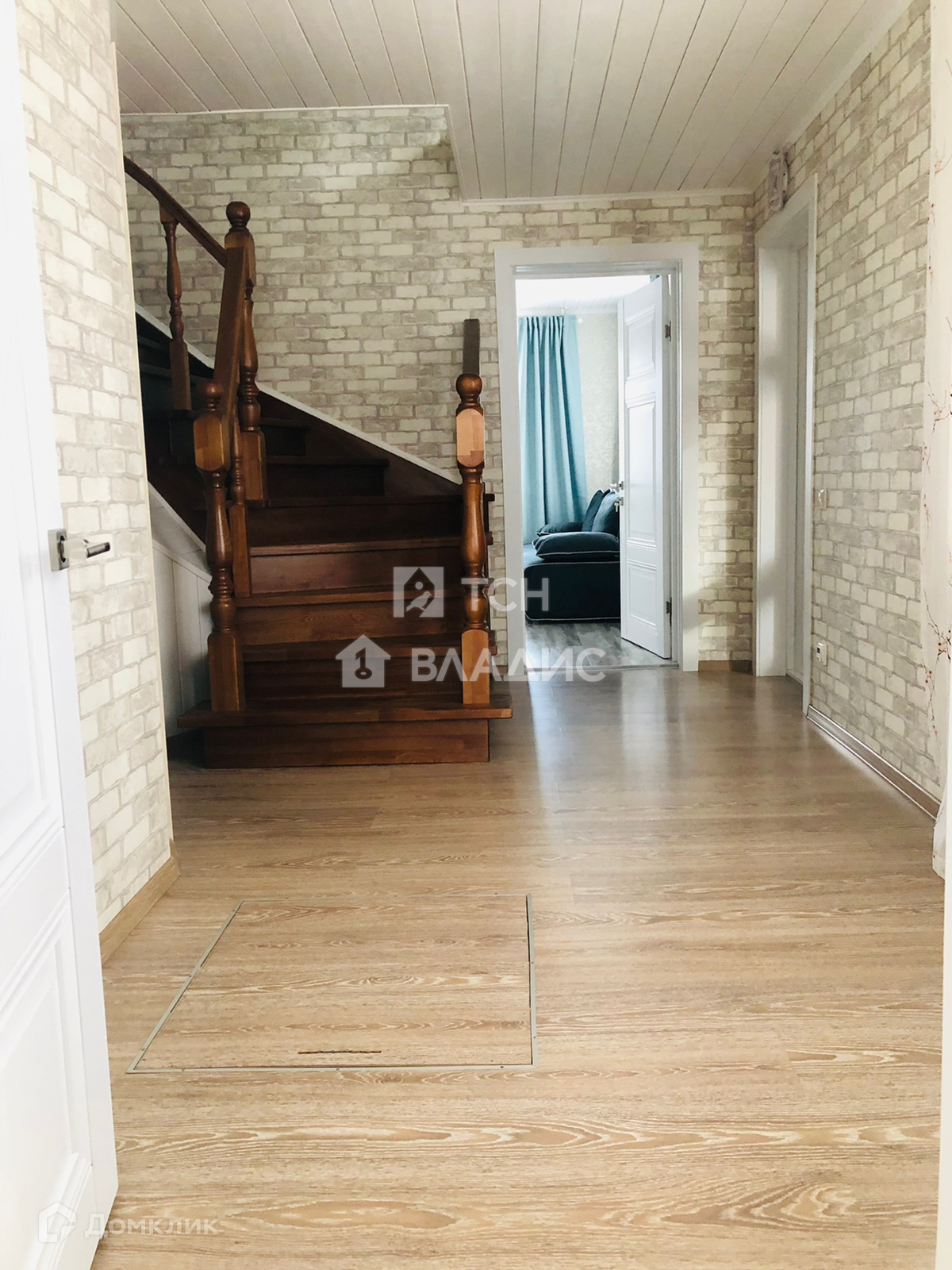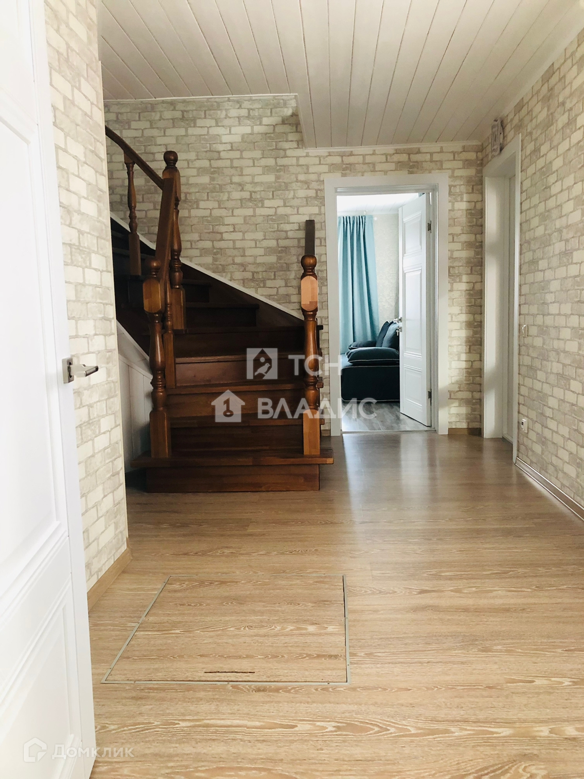 Снаружи дом отделан кирпичом. Крыша покрыта металлочерепицей, установлены окна ПВХ.