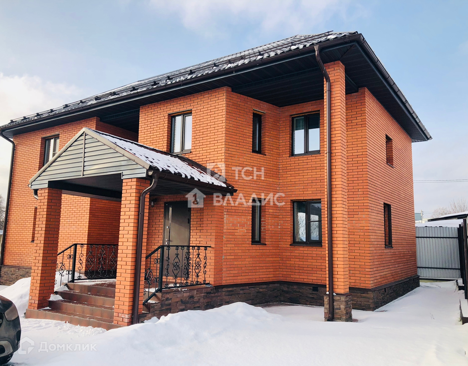 Дом построен в 2015 году из газобетонных блоков и кирпича, на участке правильной формы. Участок огорожен основательным забором (кирпичные столбы и профнастил), выполнен дренаж, установлено освещение.
