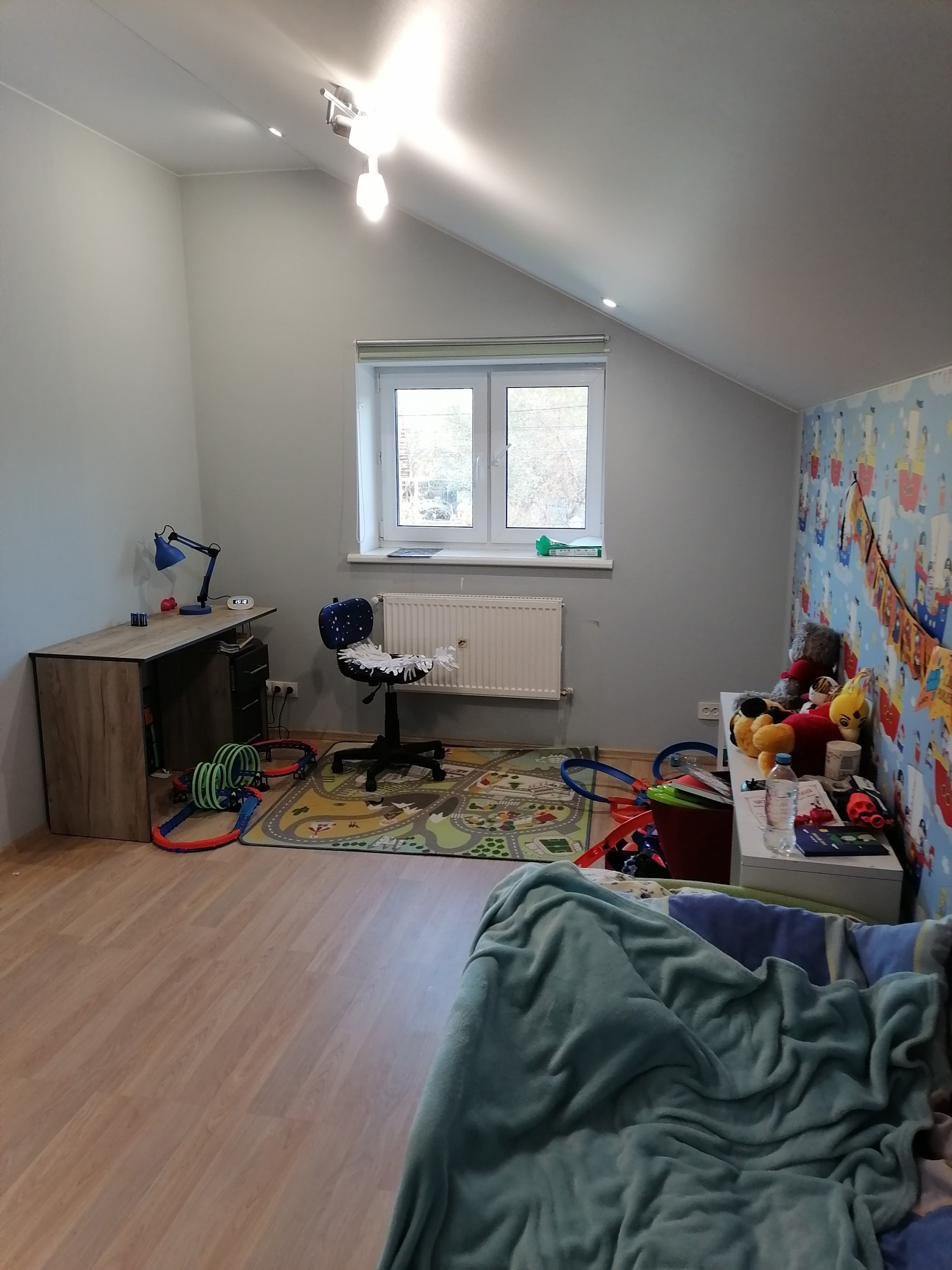 Полы утеплены и залиты стяжкой, ламинат во всех комнатах