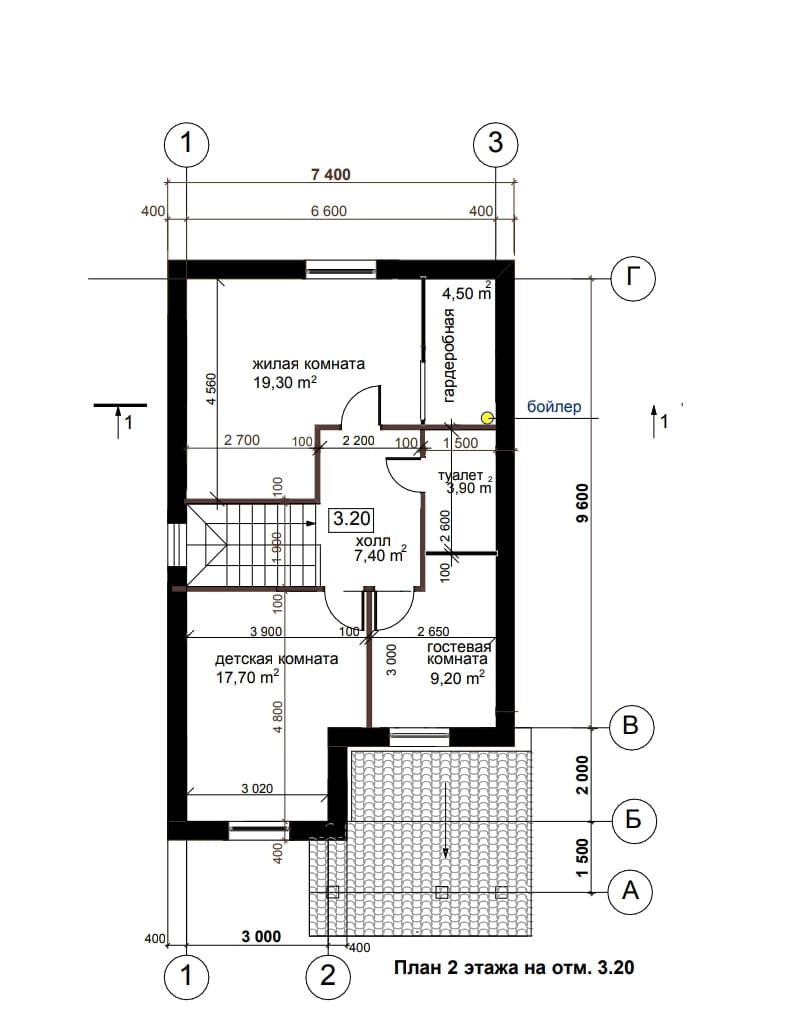 2 этаж: 3 спальни, гардеробная, санузел.