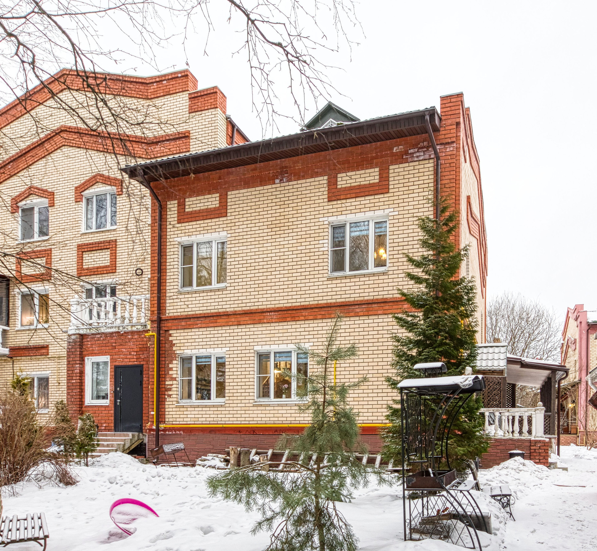 Продаётся 4-х уровневая квартира в доме блокированной застройки (таунхаус) общей площадью 174 кв. м., с отдельным входом. Участок 3,3 сотки, ИЖС. Московская прописка. Приватная территория, огорожена по периметру забором, въезд осуществляется через автоматические ворота с управлением от пульта. На придомовой территории организованы парковочные места, мангальные зоны, осуществляется видеонаблюдение. Из калитки выход к парку " Русский лес" с прогулочными зонами и скамейками. В пешей доступности вся необходимая инфраструктура: 100 метров ТЦ и мини-рынок, школа - 200 м., детский сад - 580 м., остановка общественного транспорта 200 м., автобусы и маршрутные такси ходят каждые 15 минут до М. Ольховая, Тёплый стан. Поблизости находится спортивный парк "Красная Пахра", Горнолыжный клуб, кино парк Москино.