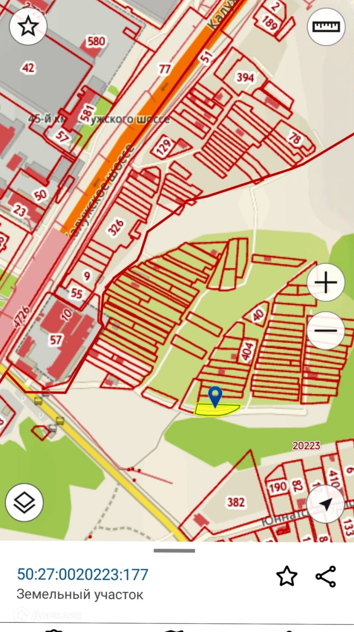 ОБ ОБЪЕКТЕ: участок длинна 55 м,ширина 15 м,круглогодичный подъезд, асфальтированная дорога,на въезде автоматический шлагбаум, кадастровый номер 50:27:00223:177