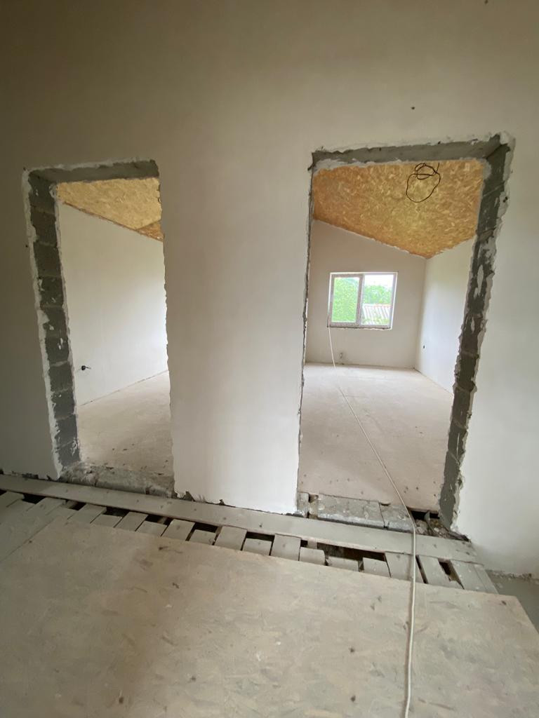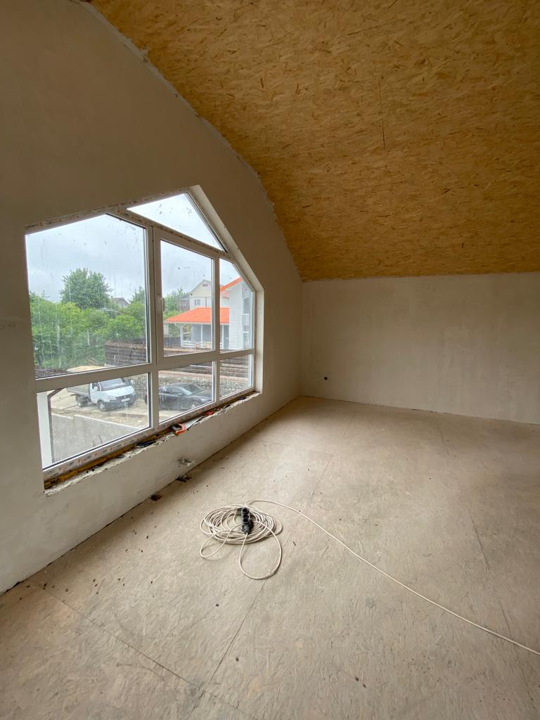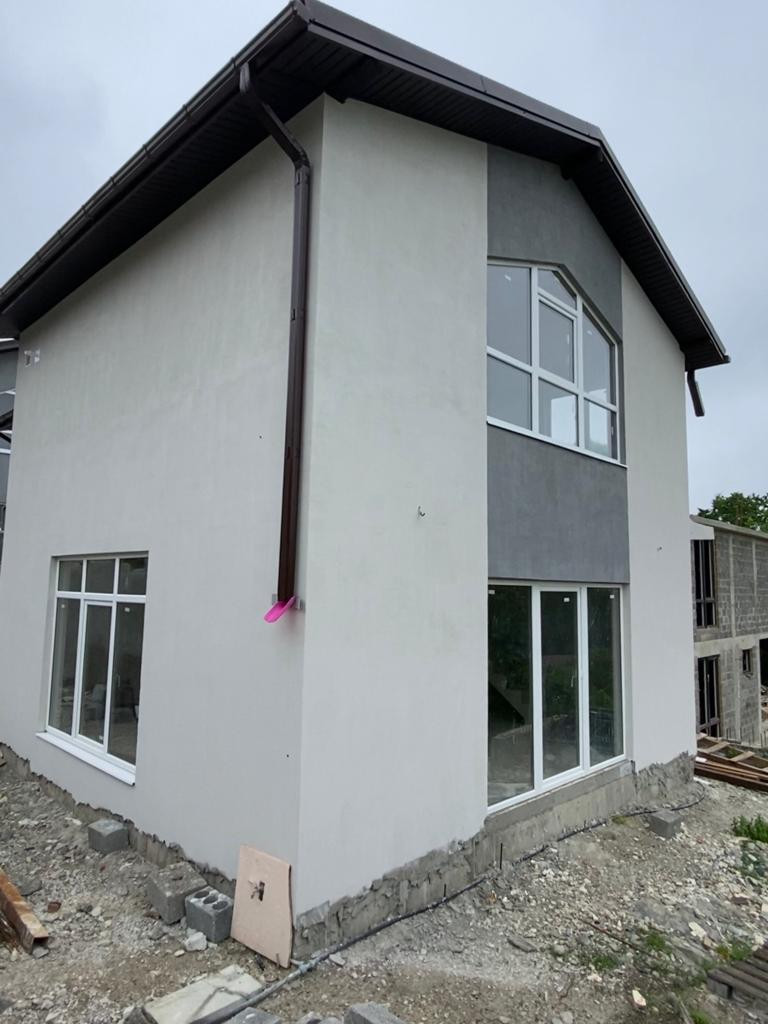 Новый блочный дом в предчистовой отделке, на 3 сoткаx зeмли 136 кв . 2 этажa. 4 спaльни. Большие витражные окна.