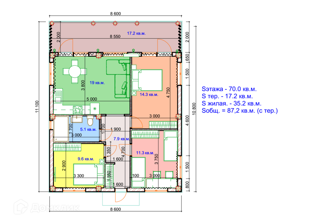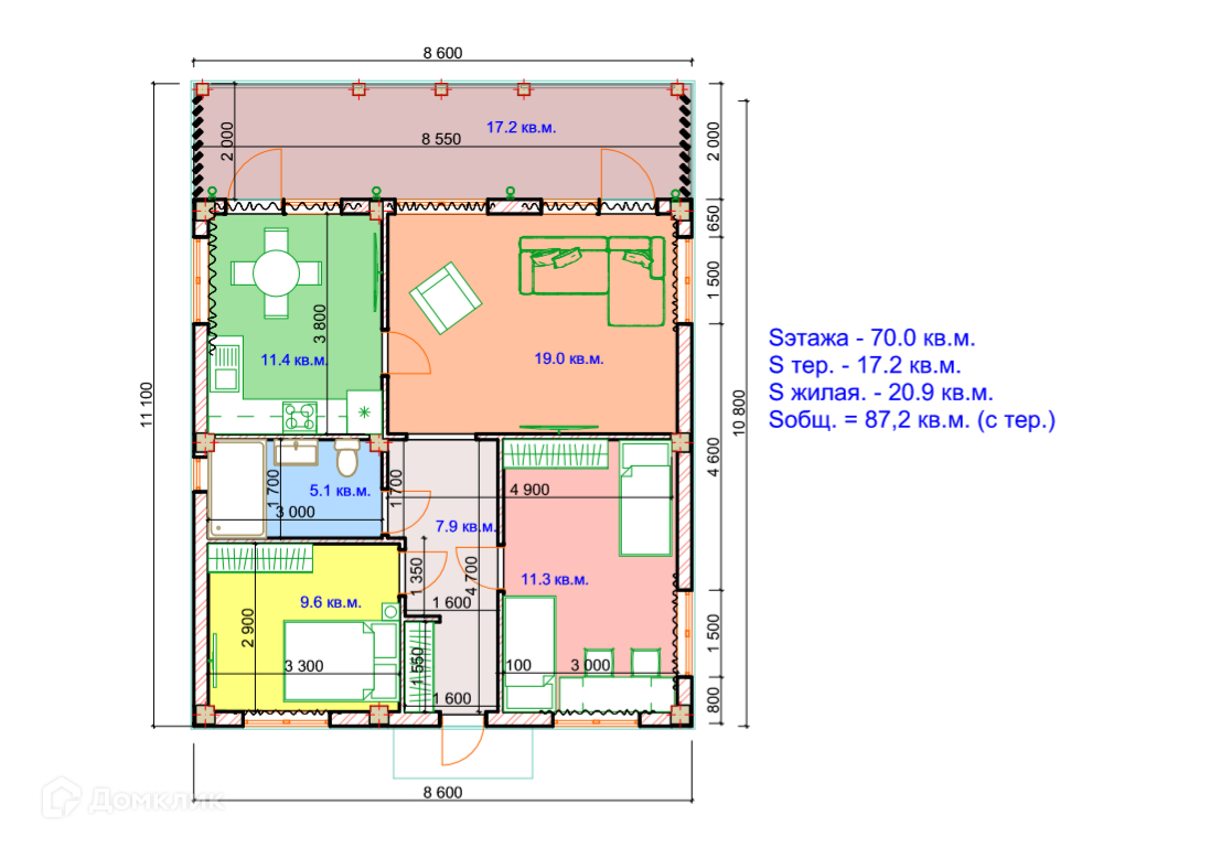 Общая площадь 93 м2