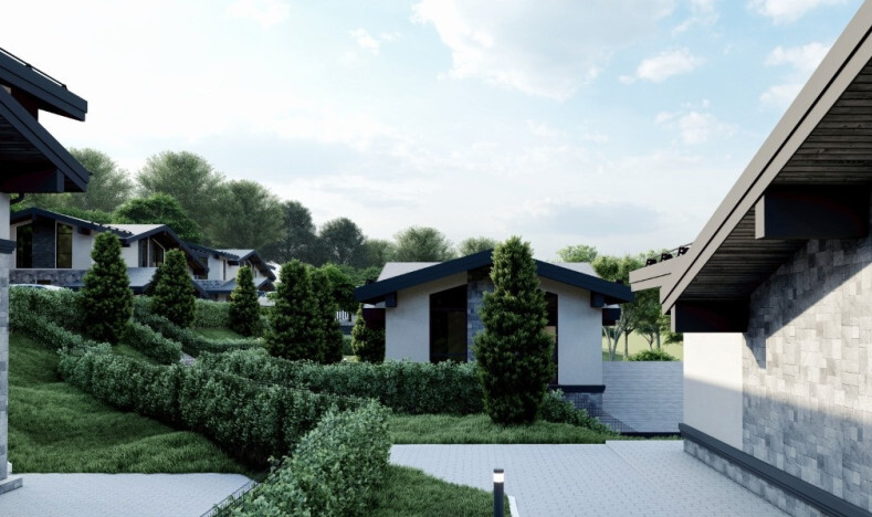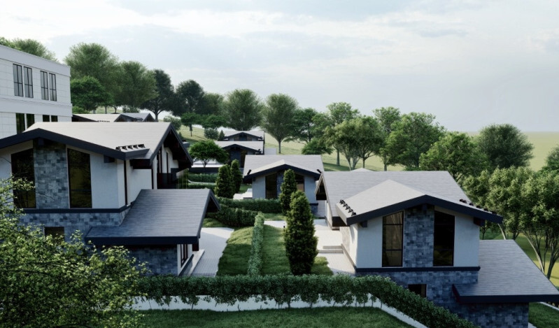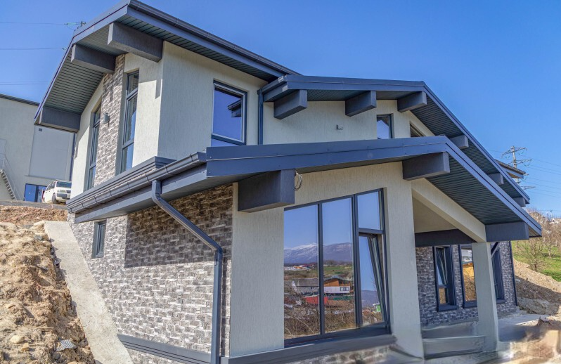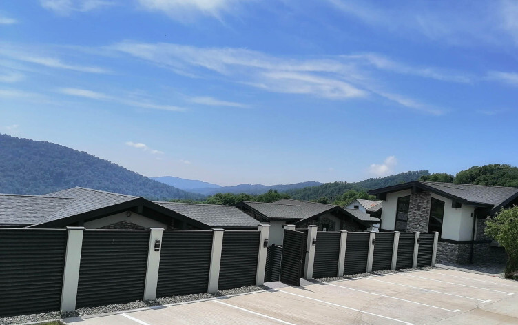Планировка дома включает в себя четыре изолированные спальни, большую кухню гостиную, два санузла и гардеробную. Из каждой комнаты открывается отличный вид на горы. Каждый участок будет облагорожен элементами ландшафтного дизайна, который входит в стоимость каждого дома.