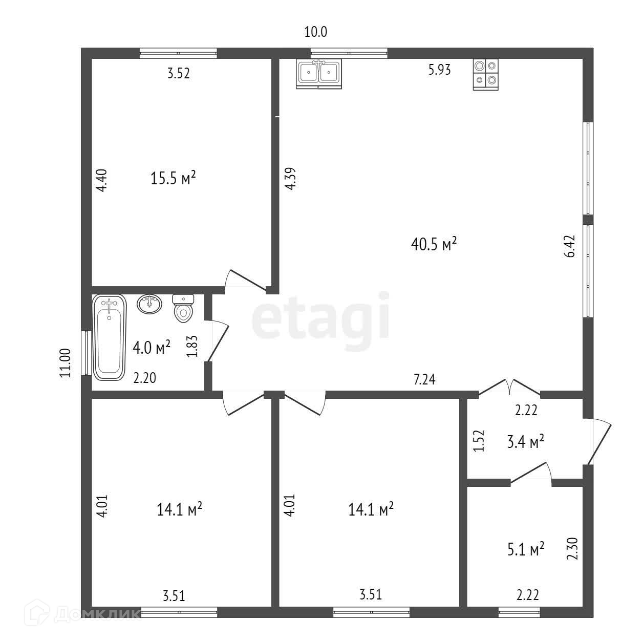 Общая площадь 96.7 м2