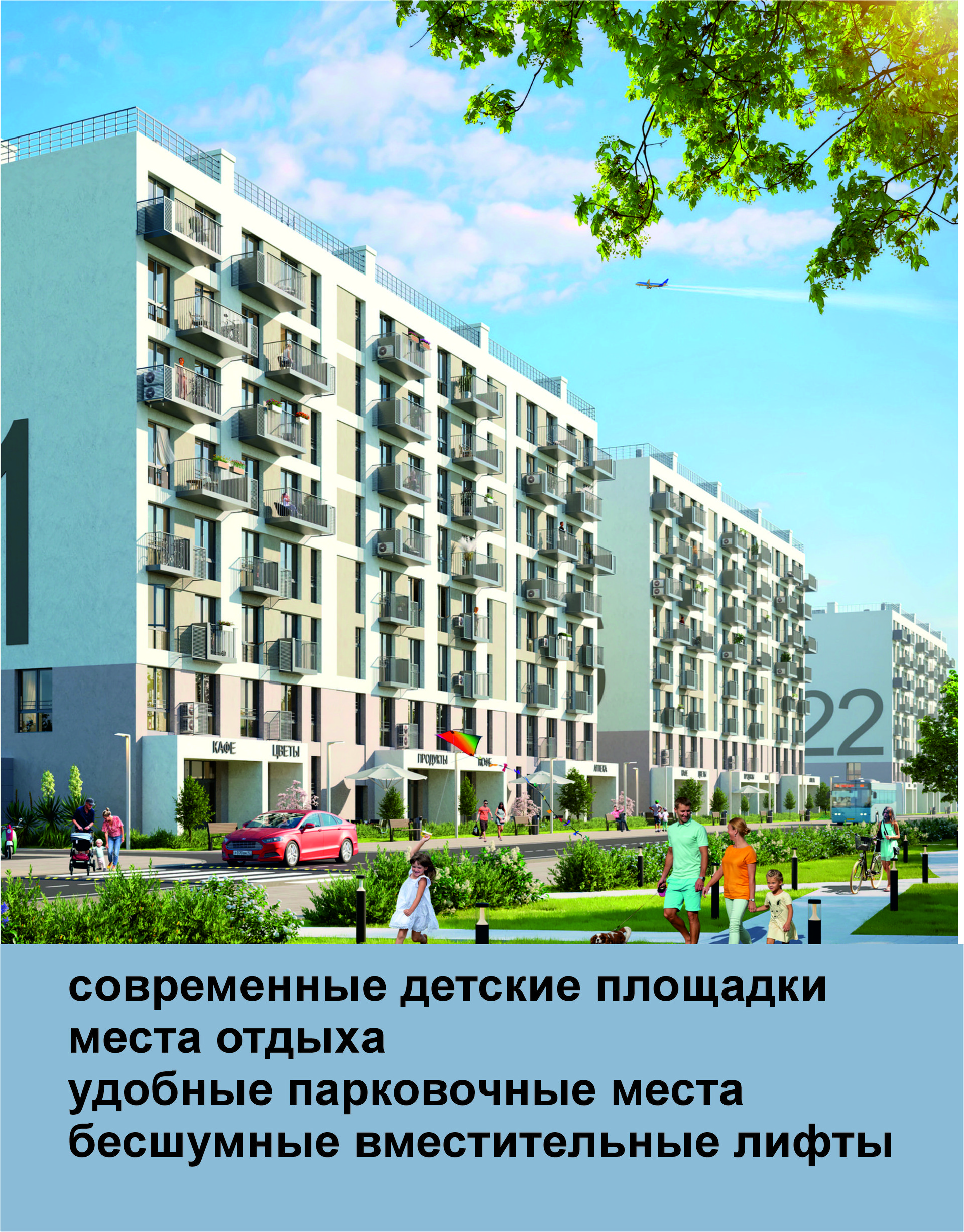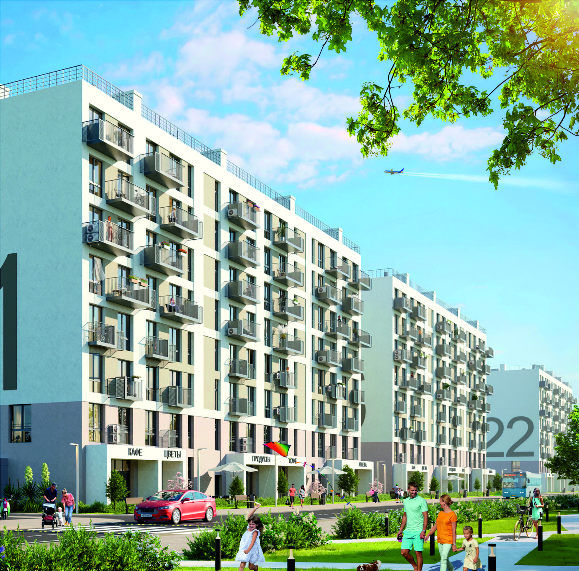 В квартирах индивидуальное газовое отопление. В домах предусмотрены встроенные коммерческие помещения для размещения кофеен, продуктовых магазинов, аптек и других объектов торговли и услуг.