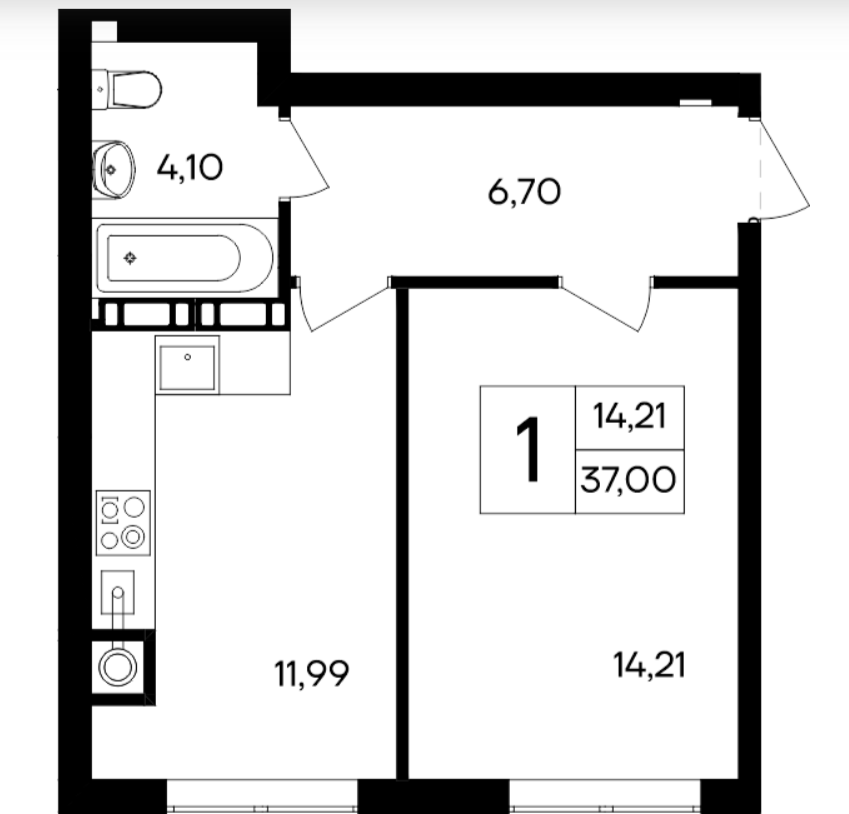 Общая площадь 37 м2