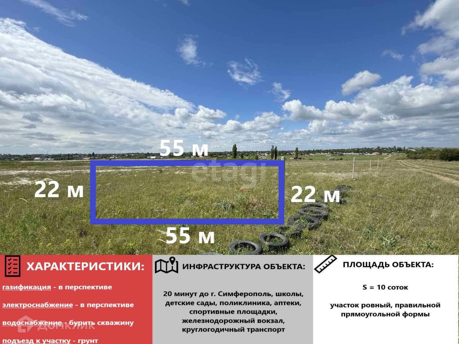 Площадь участка 10 соток, угловой, ровный, правильной формы. Электричество и газ в перспективе.