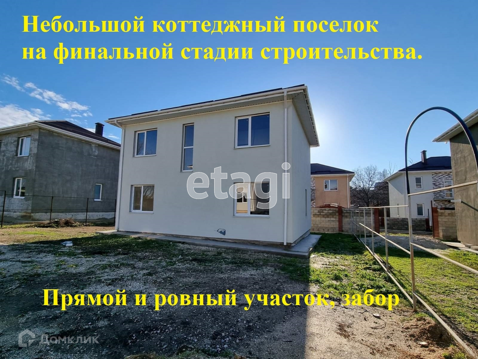 Участок прямой, асфальтированный подъезд. Вся инфраструктура свет, вода, канализация, газ. Строительные работы практически завершены.