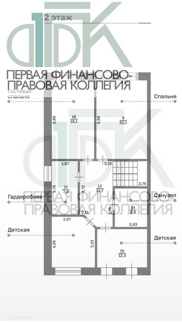 2 этаж: четыре комнаты, гардероб и санузел