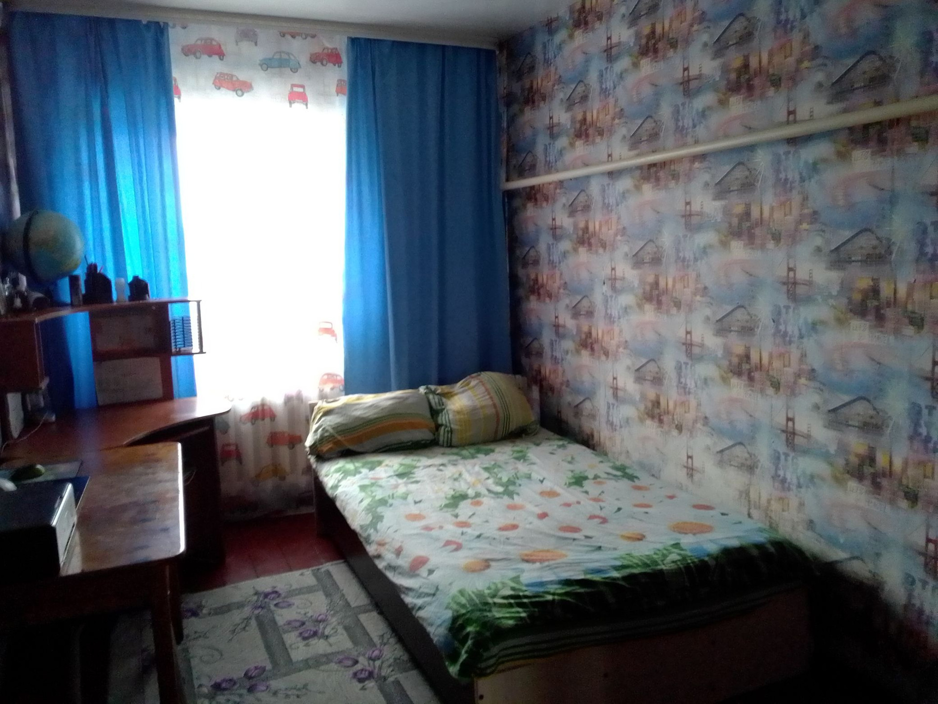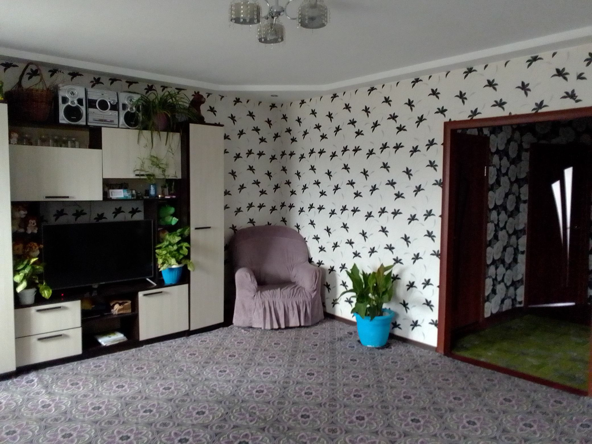 две комнаты, компьютерная комната, зал 5,60 на 4 ,50 размер,, коридор, кухня и ванная комната, кочегарка,