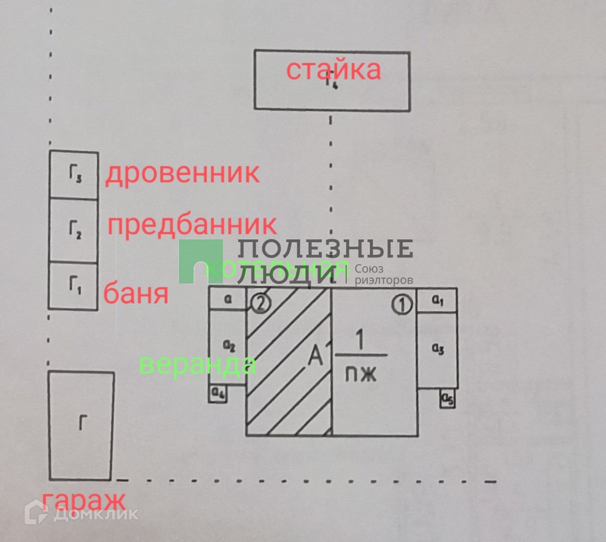 На участке расположены постройки: